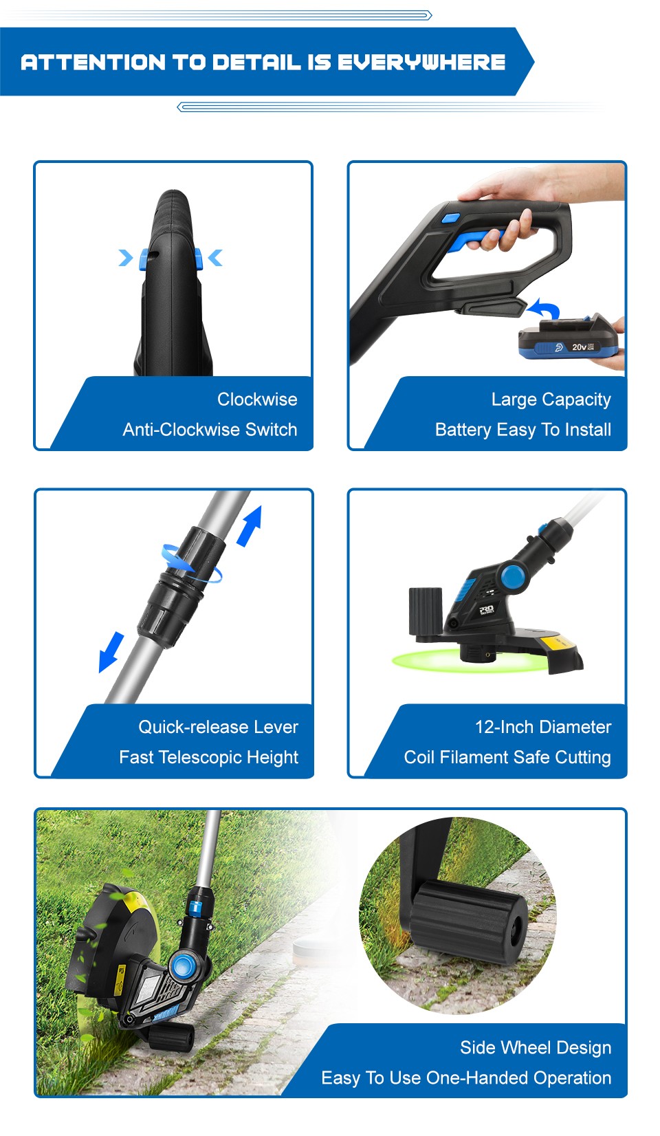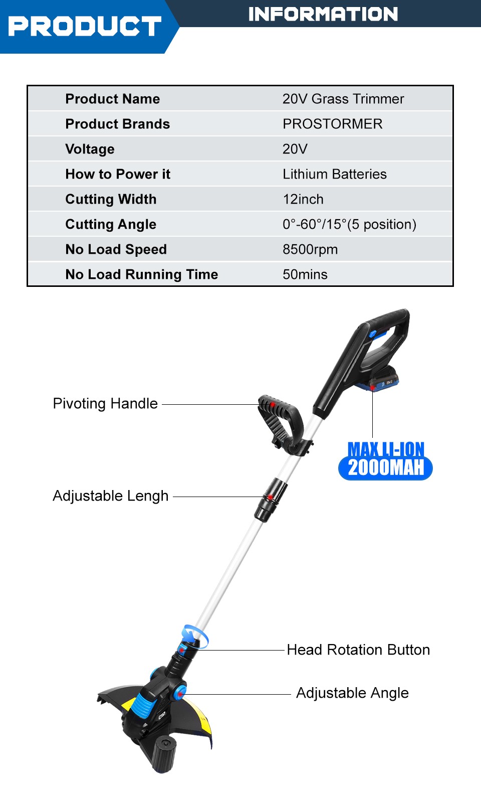 20V Elétrica Cortador De Grama Li-Ion Bateria Sem Fio Aparador De Grama 12In Liberação Automática Cortador Corda Poda Ferramentas De Jardim Por Prostormer