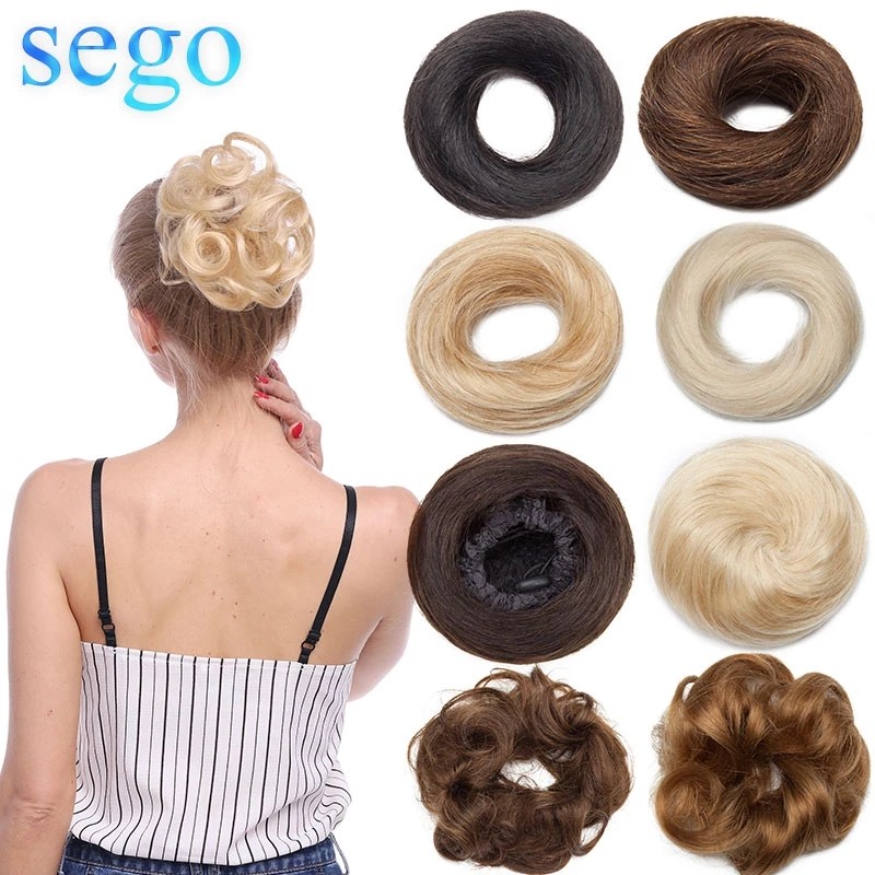 Sego 23G 100% Real Cabelo Humano Pacote De Cabelo Encaracolado Bun Scrunchies Updos Donut Chignon Cabelo Extensões Envoltório Rabo De Cavalo Remy Hairpiece