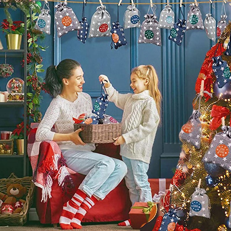 24 Dias Natal Advento Calendário Bagsadvent Calendário Sacos De Presente Diy Conjunto De Papel Adesivos Diy Enfeites De Natal Com Clipes