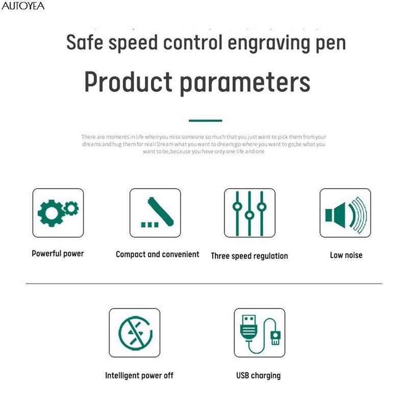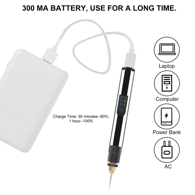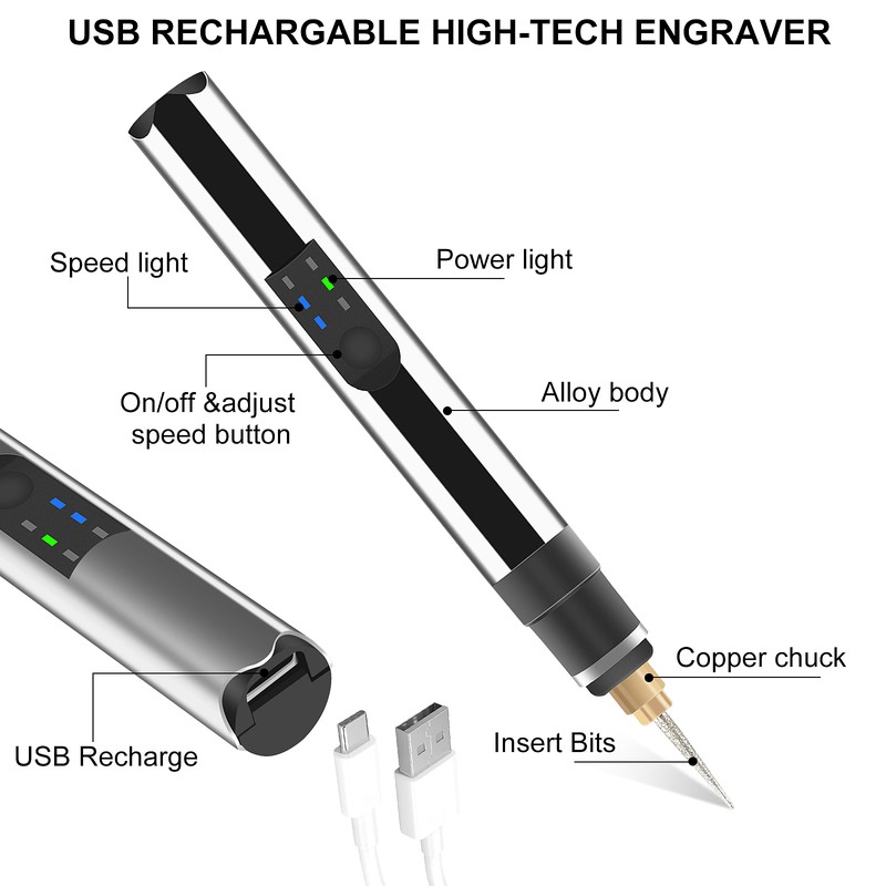 Efficiency alta eficiência-esta caneta de gravura pode fornecer uma alta velocidade de até 5000-25000r/min, proporcionando efeitos de gravação eficientes, com três níveis de ajustável, tornando a gravura mais fácil.