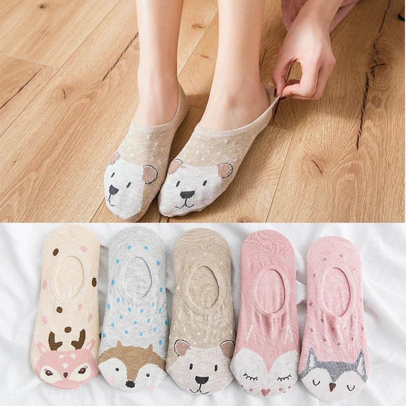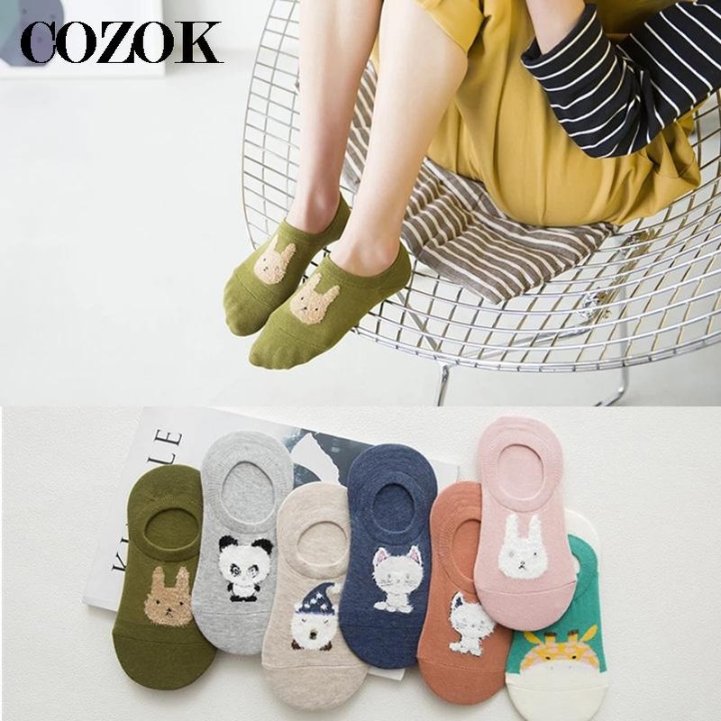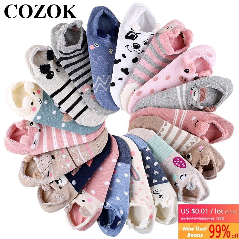 27 Estilos 10 Peça = 5 Pares/Lote Bonito Harajuku Animal Feminino Meias Conjunto Engraçado Primavera Gato Cão Coelho Panda Baixo Corte Curto Meia Feliz