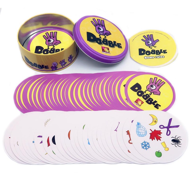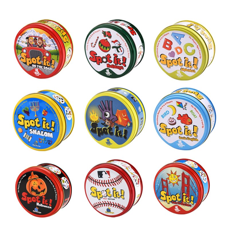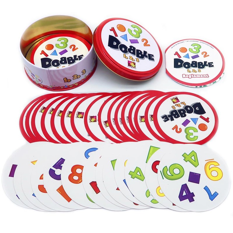 27 Estilos Dobble Jogo De Tabuleiro De Mesa Para Dobbles Crianças Cartões Ir Acampamento Metal Lata Caixa Shalom Básico Inglês Brinquedos