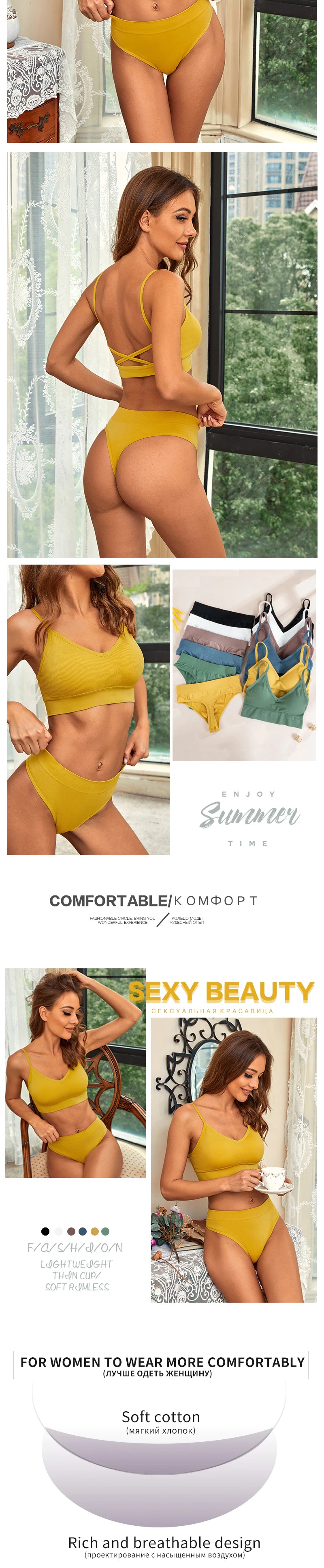 2Pcs Conjunto De Sutiã Feminino Sexy Bralette Sexy Lingerie Feminina Com Nervuras Topos Sem Fio Sem Costura Sutiã Livre E Calcinha Sexy Conjunto