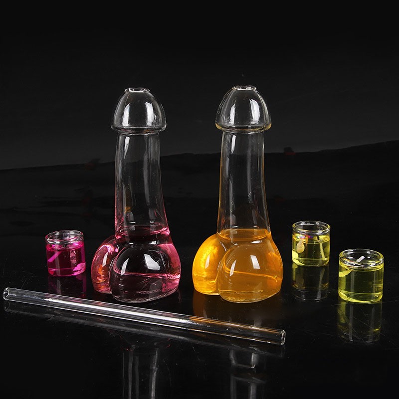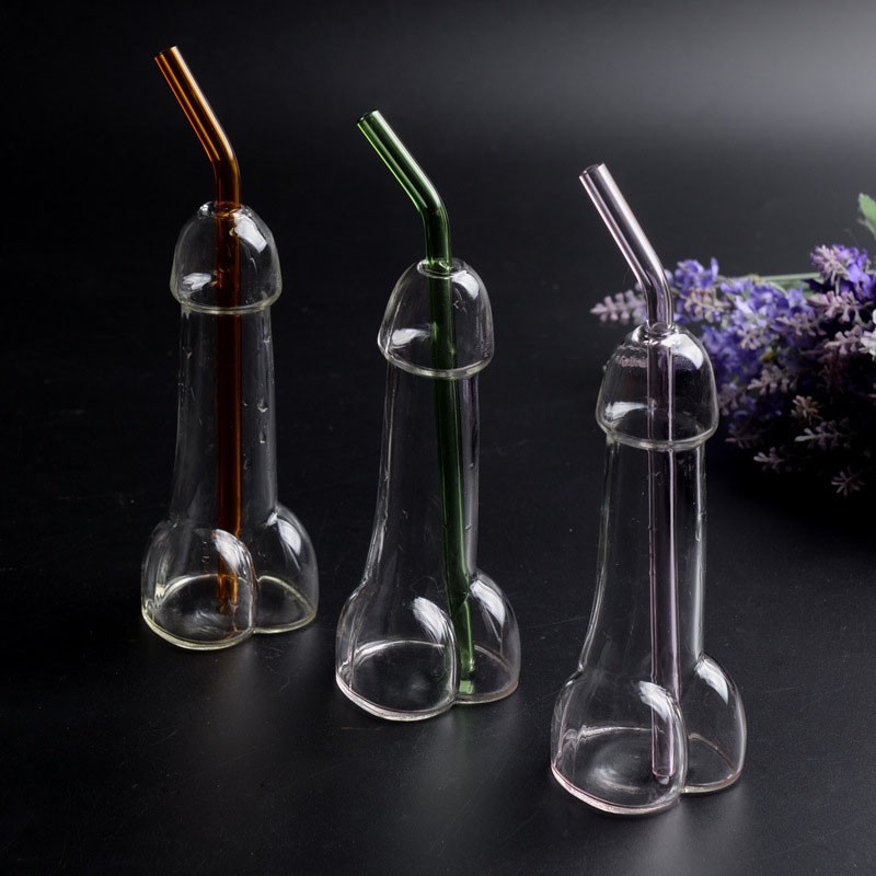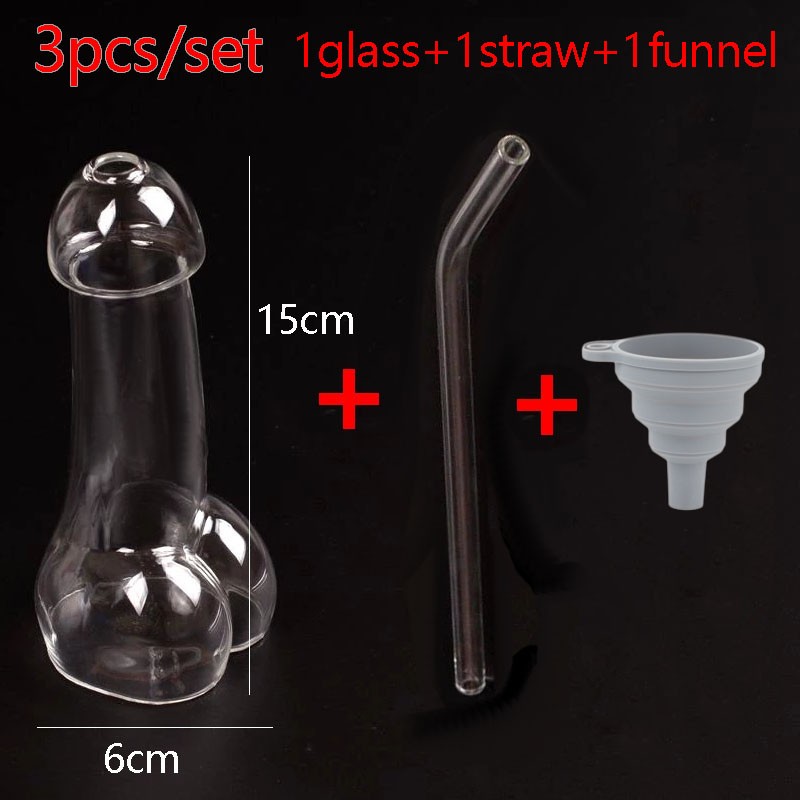 3/1 Pçs Copos De Vinho Copo Pênis Genital Copo De Vidro Dick Cocktail Drinkware Festa Copo De Cerveja Engraçado Interessante Copos Caneca Garrafa Palha