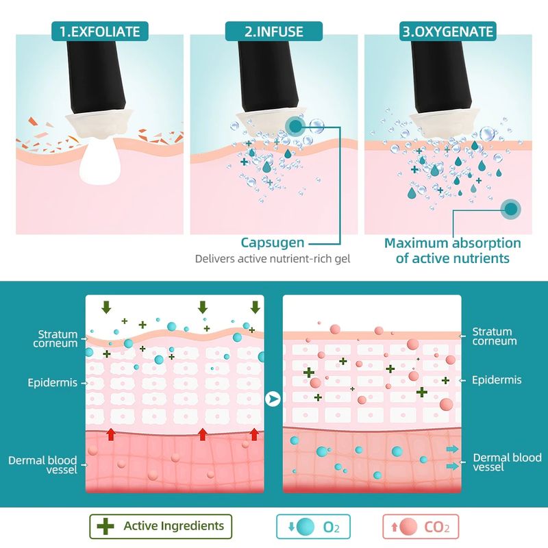 Este é um 3 em 1 dispositivo da beleza da pele, o uso do co2 ativa o mecanismo natural do corpo. Efeito boer, de modo que a pele pode liberar o oxigênio no ambiente high-CO2. Melhore o conteúdo de oxigênio da pele, estimulando o metabolismo celular, acelere a função de reparo da pele. Melhore a textura da pele de dentro para fora.