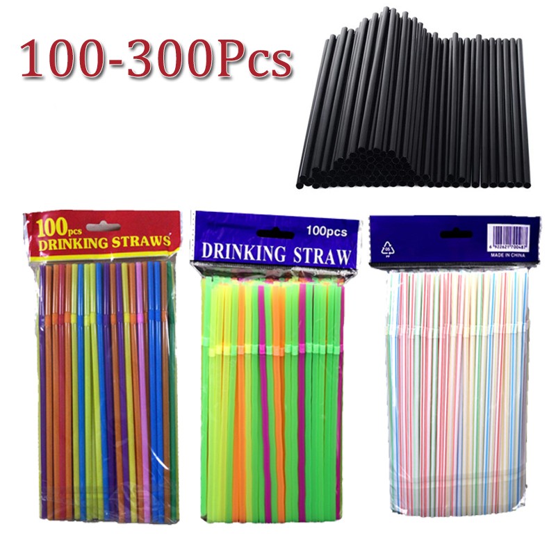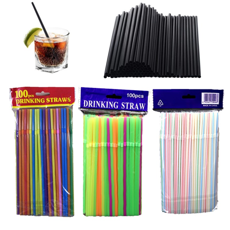 Rietjes Descartáveis Dos Canudos Plásticos De 300-100 Pces Para A Barra De Jantar Da Cozinha Que Bebe O Cocktail Da Bebida Fornece Acessórios Preto