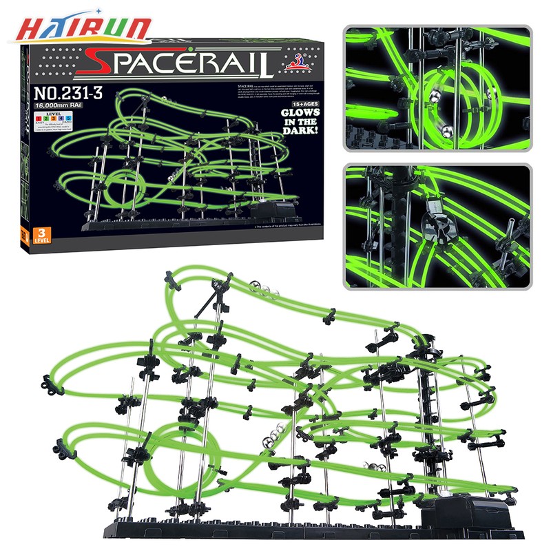 O trilho espacial também é chamado de spacewarp ou montanha-russa. É um um modelo brinquedos de construção como blocos, ou chamado de brinquedos do-it-yourself (diy). Todas as partes dos brinquedos são separadas originalmente. Você tem que descobrir, separou-os e combiná-los no modelo.