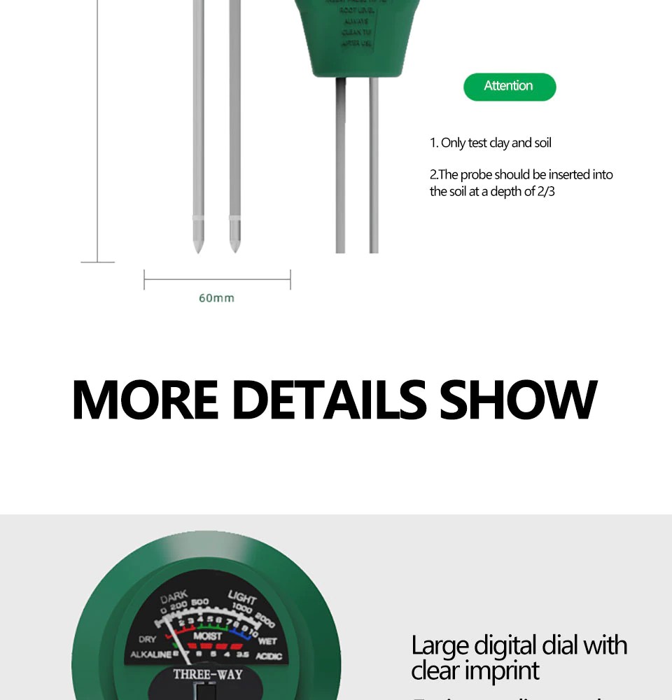 Adequado para plantas interiores e exteriores, jardins e gramados para verificar a condição do solo para frutas, flores, legumes, arbustos, etc. altamente preciso e fácil de operar para manter suas plantas, gramados e flores em boas condições.