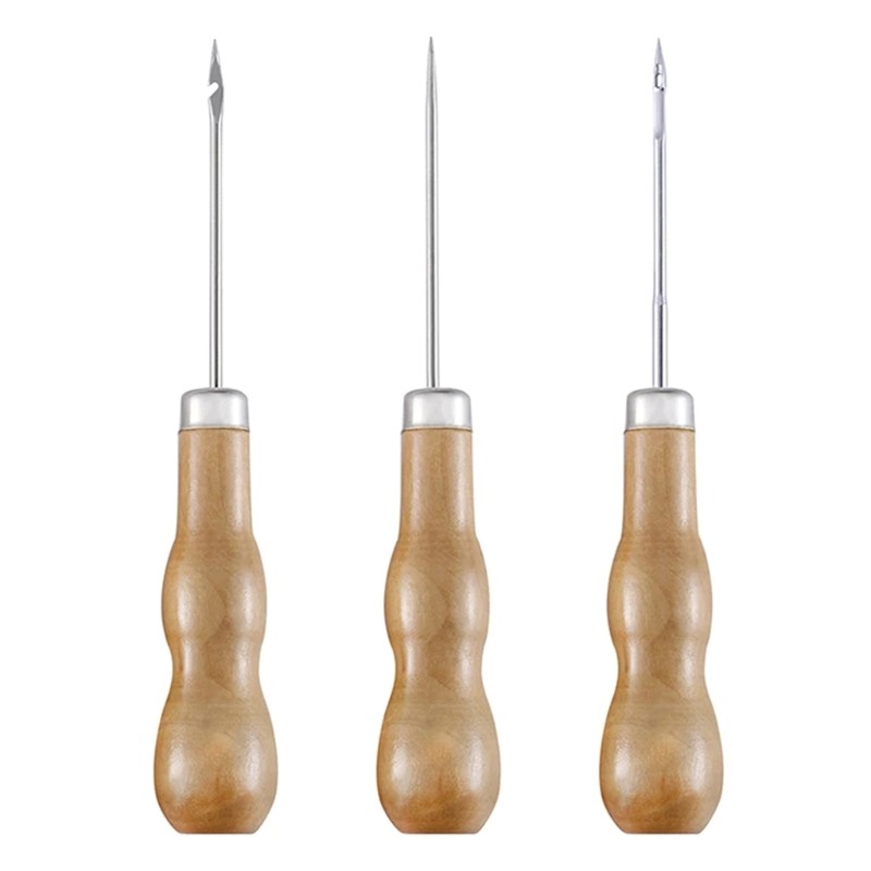 3 Pçs/Set Punho De Madeira Costura Furador Mão Stitcher Ferramenta Diy Shoe Repair Ferramenta Gancho Acessórios De Couro Soco Leathe