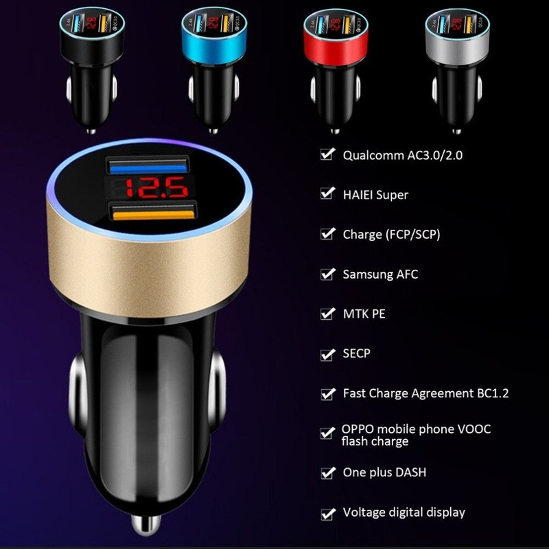 Carregador Veicular Usb Para Celular Com Display Led, Carregador Para Xiaomi, Samsung Iphone 12 11 Pro 7 8 Plus Adaptador, Carregador De Celular