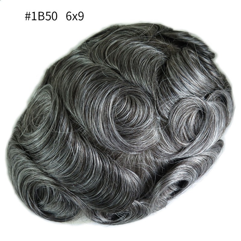 4 Peças #1B40, #1B50 Cor 6X9 &Amp; 7X10 Mono + Plutônio Cabelo Humano Personalizado Peruca 130% Densidade Mais Grossa, Tem Mini Net Na Frente
