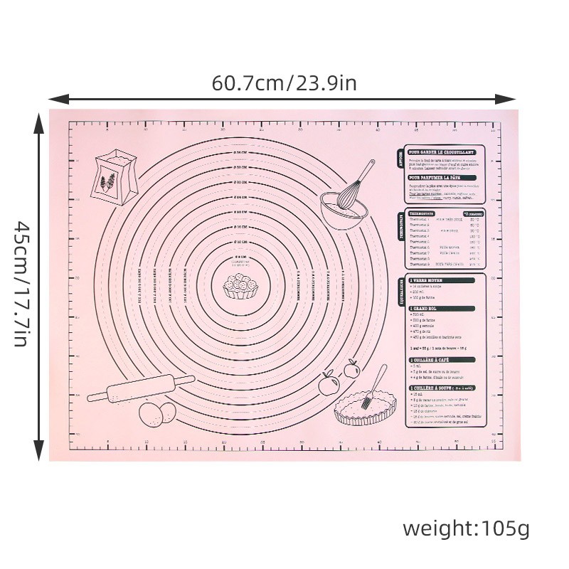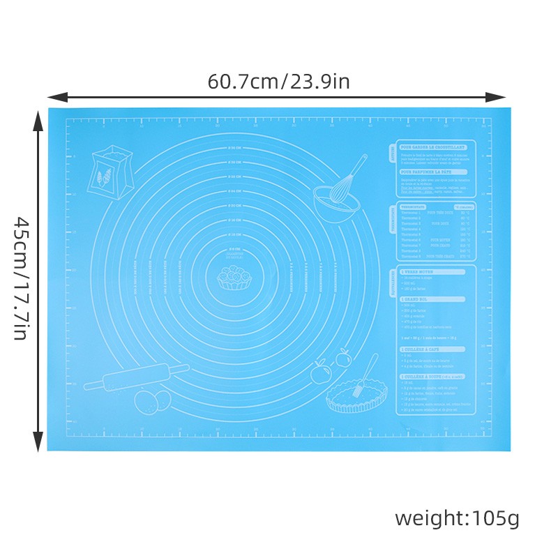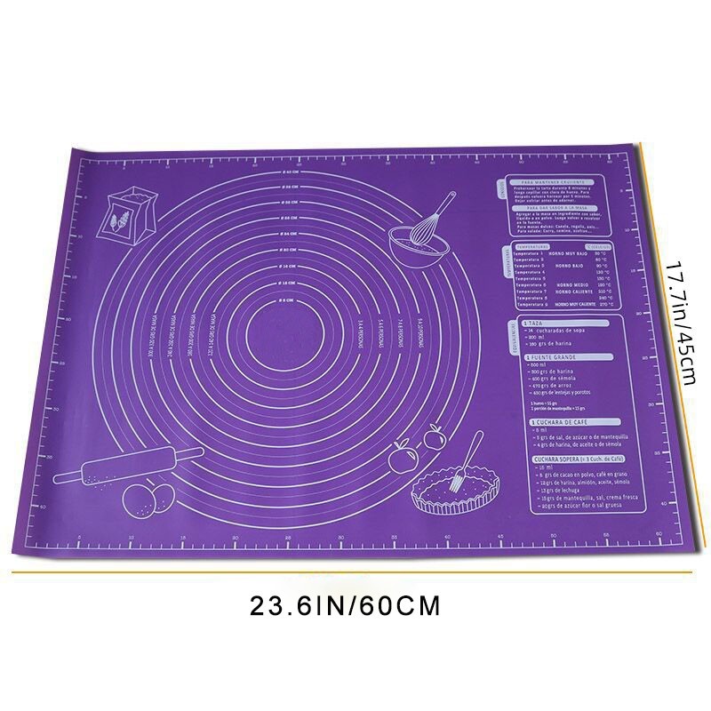 Este tapete de cozimento tem uma escala em centímetros e outra em polegadas. Fazendo os doces neste tapete, você vai economizar muito trabalho e se divertir.