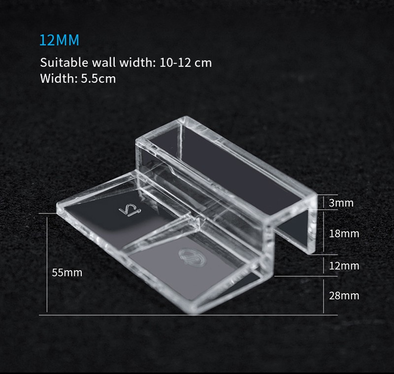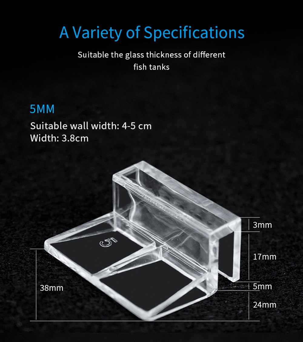 Pacote Incluindo 4 pces x suporte de cobertura de vidro de aquário Material: Acrílico Cor: Clear Tamanho s: largura: 5cm, largura adequada da parede: 5-6 cm Tamanho m: largura: 5cm, largura adequada da parede: 7-8 cm Tamanho l: largura: 5cm, largura adequada da parede: 9-10 cm Tamanho xl: largura: 5cm, largura adequada da parede: 10-12 cm