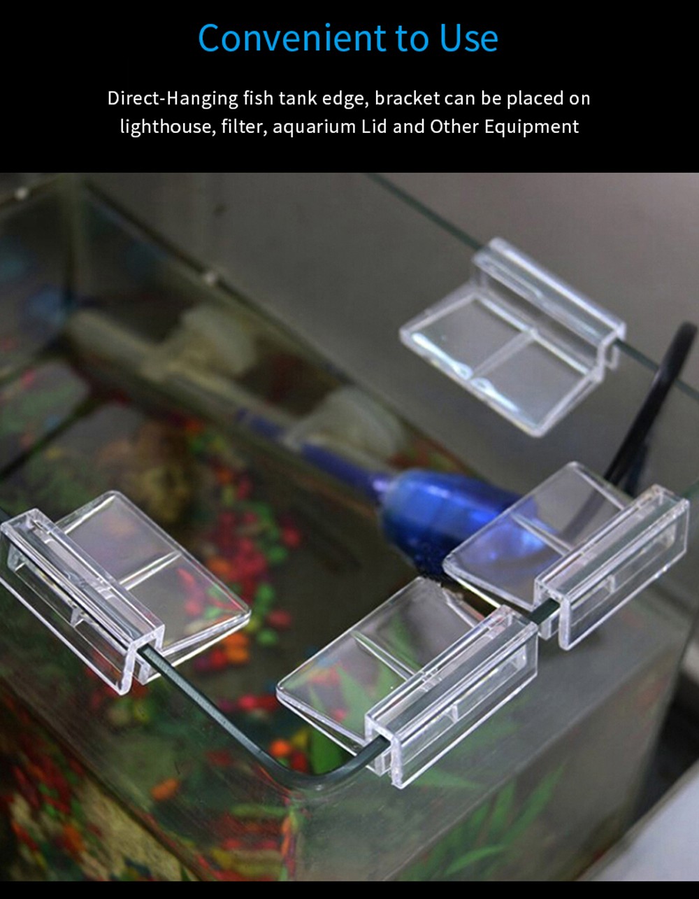 Pode ser pendurado diretamente na parede de vidro do tanque, suporte pode ser colocado no quadro da lâmpada, filtro, cobertura do tanque e outros equipamentos. Tamanho compacto, fácil de instalar e usar.