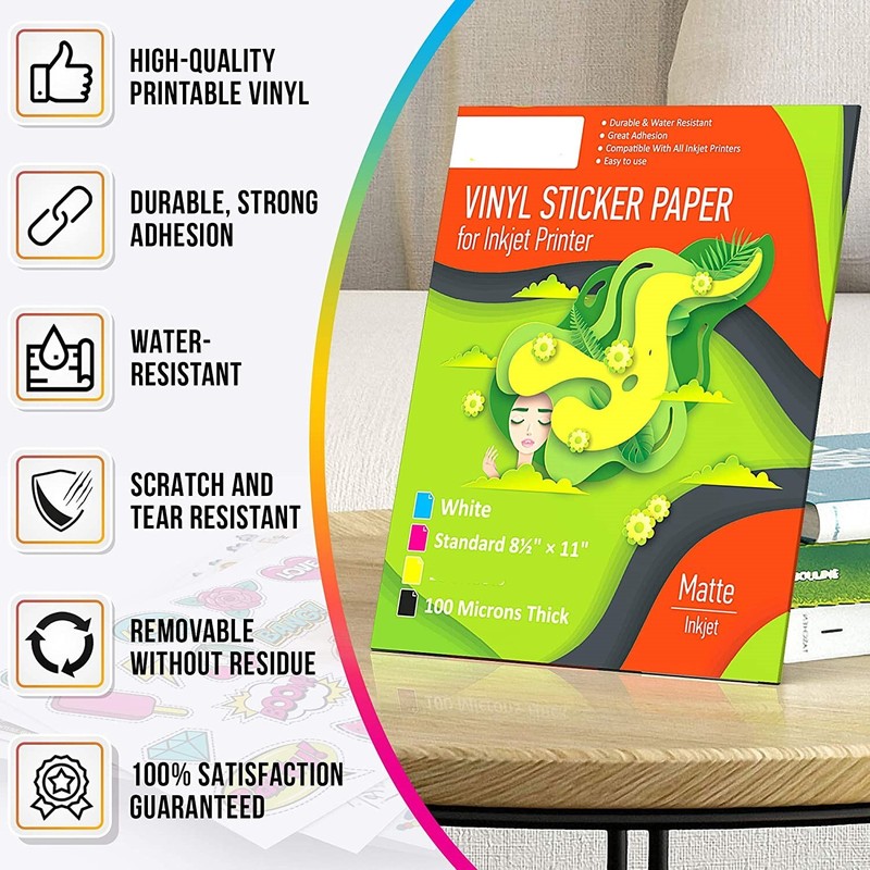 - Papel resistente ao risco e ao rasgo-nossas folhas de vinil imprimíveis para impressora a jato de tinta feitas com papel imprimível matte de alta qualidade da etiqueta, sua arte finala será extremamente durável, brilhante colorido e confiável