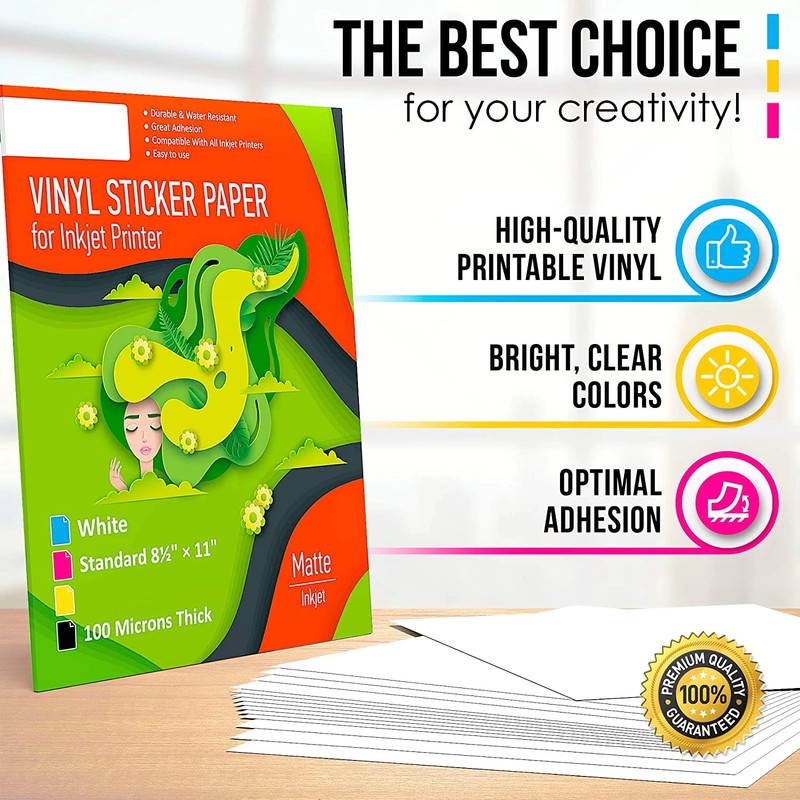 - Papel de vinil imprimível de alta qualidade-conjunto inclui 20/50/100 folhas de vinil branco de papel adesivo imprimível para impressora, acabamento fosco. Tamanho de 297x210mm adequado para alta resolução e qualidade de imagem clara