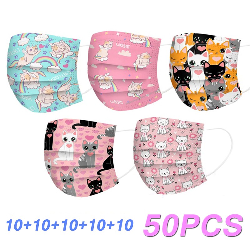 • 50 Pçs Criança Máscara Facial Descartável Natal Impresso 3Ply Orelha Loop Unisex Capa Boca Mascarillas Halloween Cosplay