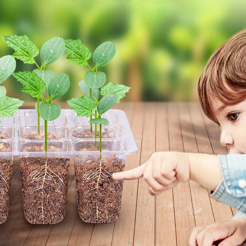 O solo e a água da bacia de mudas não correrão em todos os lugares, gestão conveniente, isolamento térmico e retenção de umidade e tampa transparente e transparente podem ser vistos claramente durante o crescimento das mudas. A tampa está na prisão, não se preocupe soprar, muito forte pode ser laminado juntos e economizar espaço.