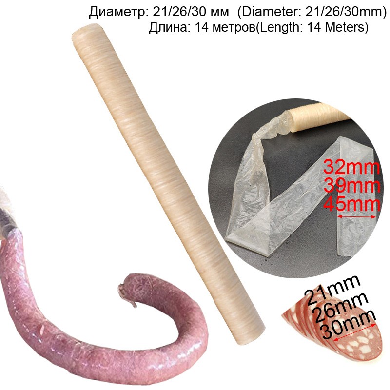 6/14 Medidores X 21/26/30Mm Seco Colagénio Salsicha Tubo De Embalagem De Salsichas Carne Embalagem Para Fabricante De Salsicha