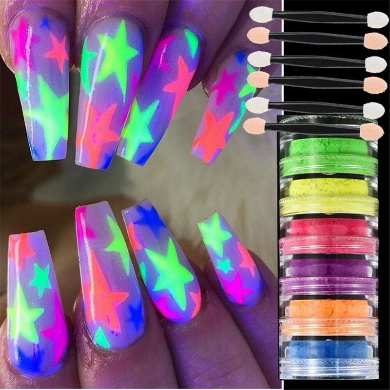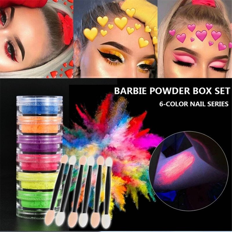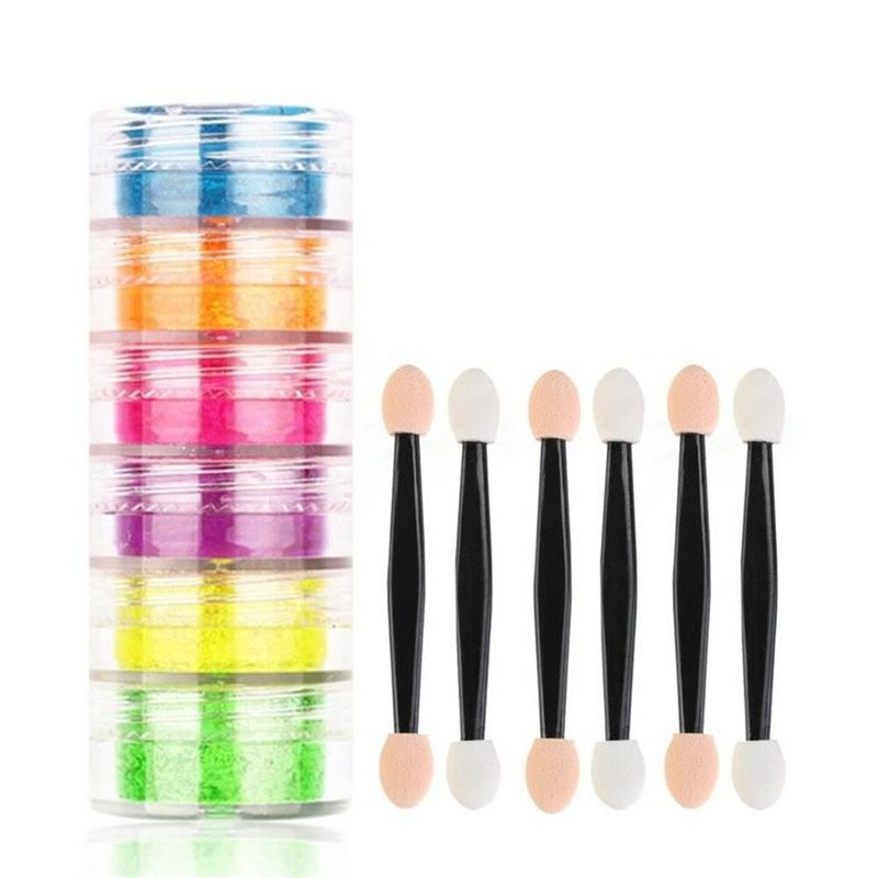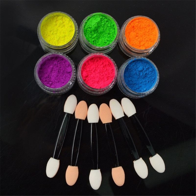 6 Cores Mistura/Conjunto Neon Solto Pó Sombra Pigmento Fosco Mineral Splangle Prego Pó Compõem Shimmer Brilhante Sombra De Olho