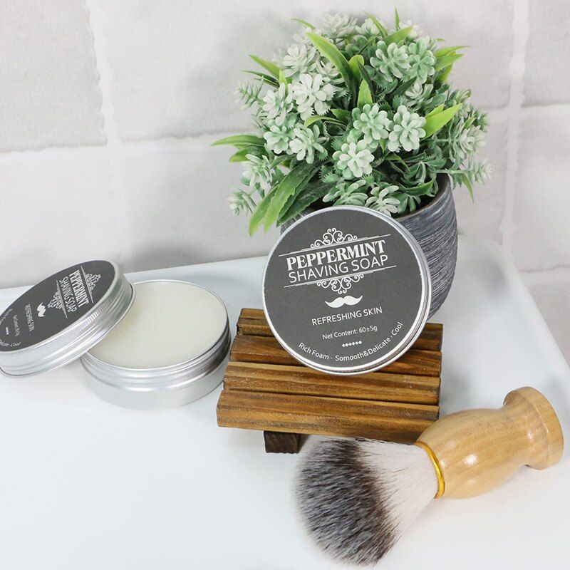 60G Hortelã Perfumado Masculino Sabão De Barbear De Alumínio Encaixotado Espuma Rica Suave Não Estimulante Sabão Artesanal Suave