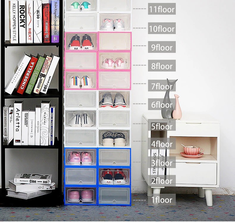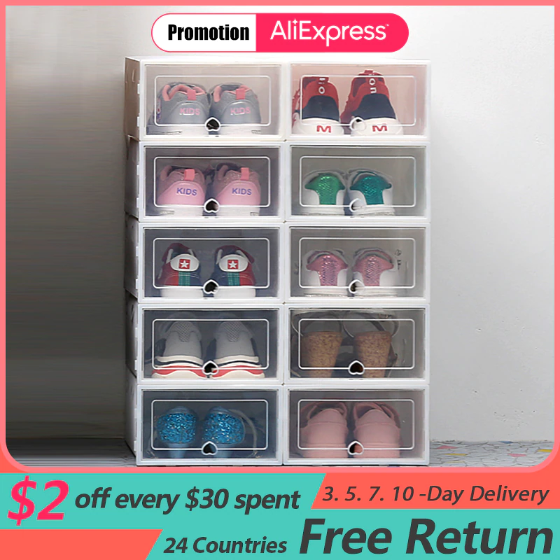 6 Pacote Transparente Sapatos Caixa De Sapato Organizadores Espessamento Dobrável Dustproof Caixa De Armazenamento Plástico Empilhável Combinado Sapato Cabinetsale
