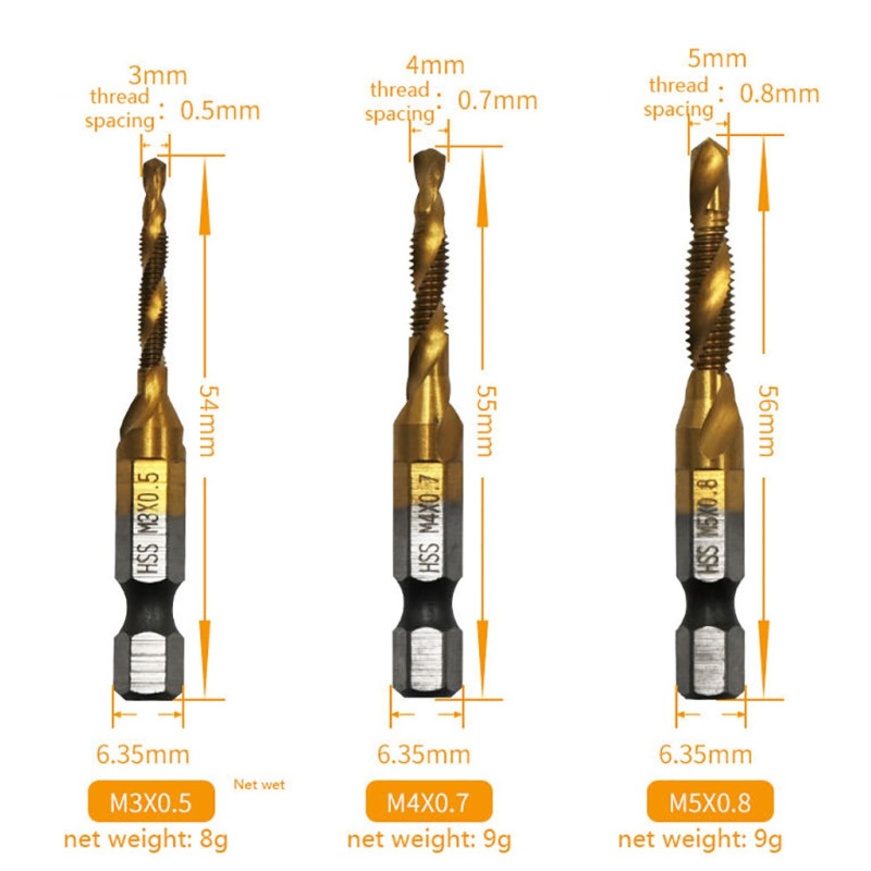 Brocas Profissionais De Titânio 6 Peças, Haste Hexagonal, Rosca Métrica Brocas Máquina Composto, Ferramentas Manuais
