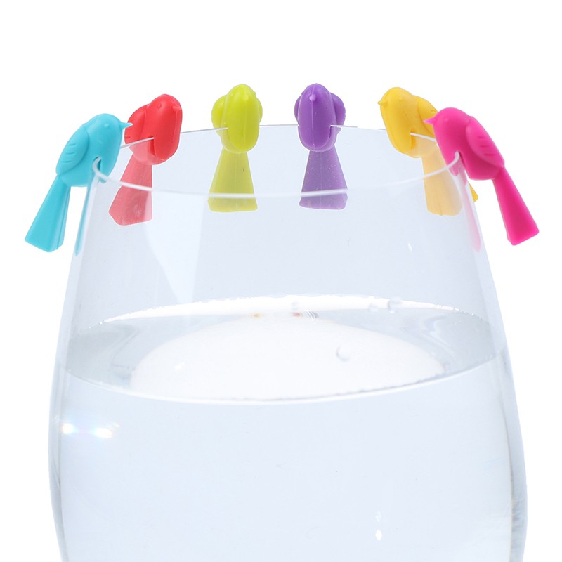 Marcadores Multicoloridos De Silicone Para Copo, Para Decoração De Festas, Amuletos Para Bebidas E Bebidas, Forma De Pássaros
