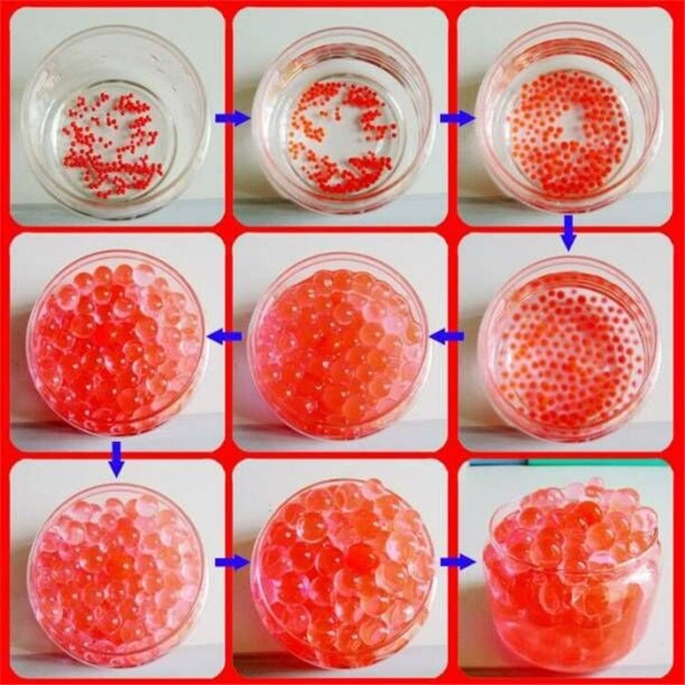Como usar: coloque as contas em 100 vezes de água por 1-2 horas e elas vão crescer magicamente.