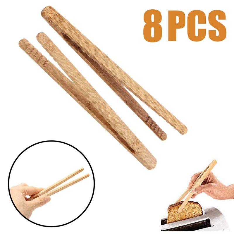 Clipe De Chá De Madeira Bambu, 8 Peças, Língua Torradas Pinça Bacon Gelo Chá, Utensílios De Acessórios