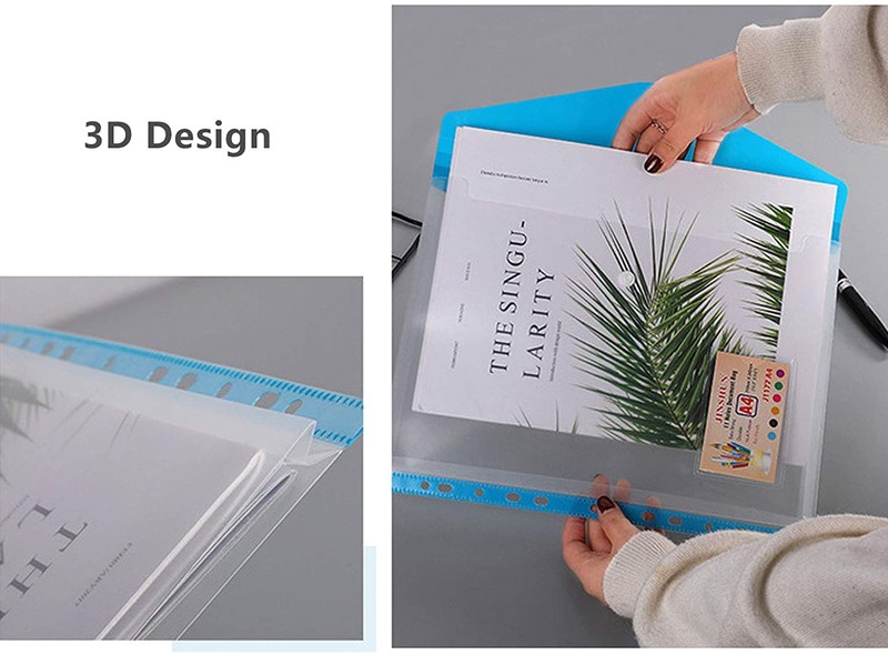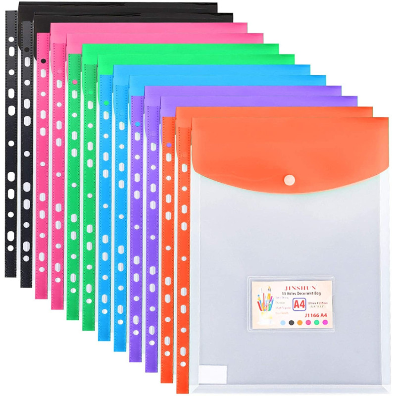 A4 Limpar Plástico Perfurado Bolsos Com Fecho De Botão Para Arquivos De Escritório Em Casa E Escola 11 Buraco Binder Envelopes Pastas Organizador