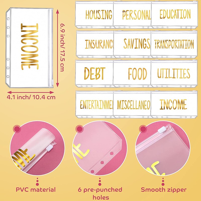 A6 Envelopes De Couro Pu Para Fichário, Organizador Pessoal Com 12 Pastas De Bolso Com Zíper Para Planejador Conta, Economia De Dinheiro