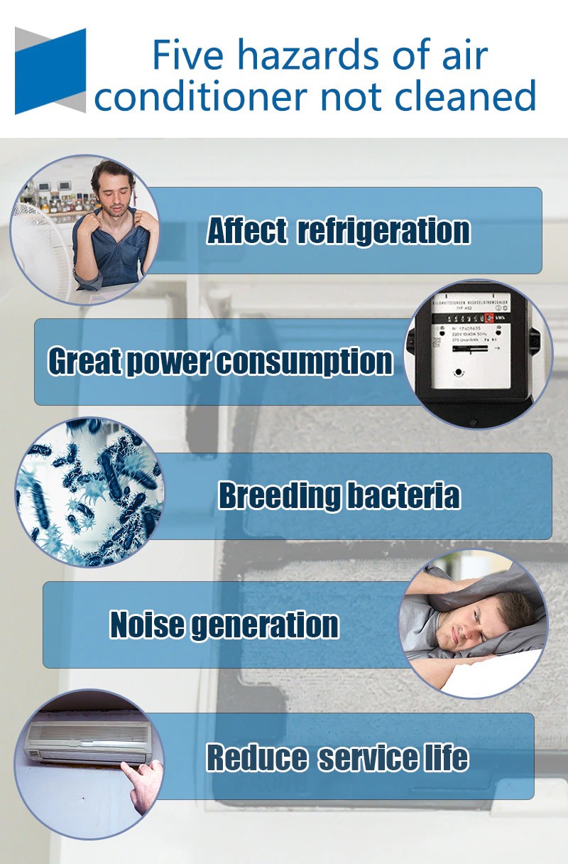 3. ajustável: design do prendedor do cabo e do cabo na borda da capa para ajustar a boca aberta como você quer, puxar-tipo corda elástica para evitar que o esgoto salpicos durante o processo claro do condicionamento de ar.