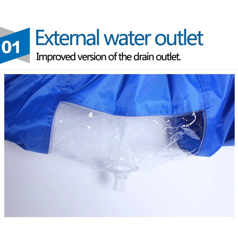 2. fácil de instalar: simples puxe a capa sobre o dispositivo e prende-a com a alça e fivela. Construído-em uma tomada externa, que permite drenar a água de água em um balde.