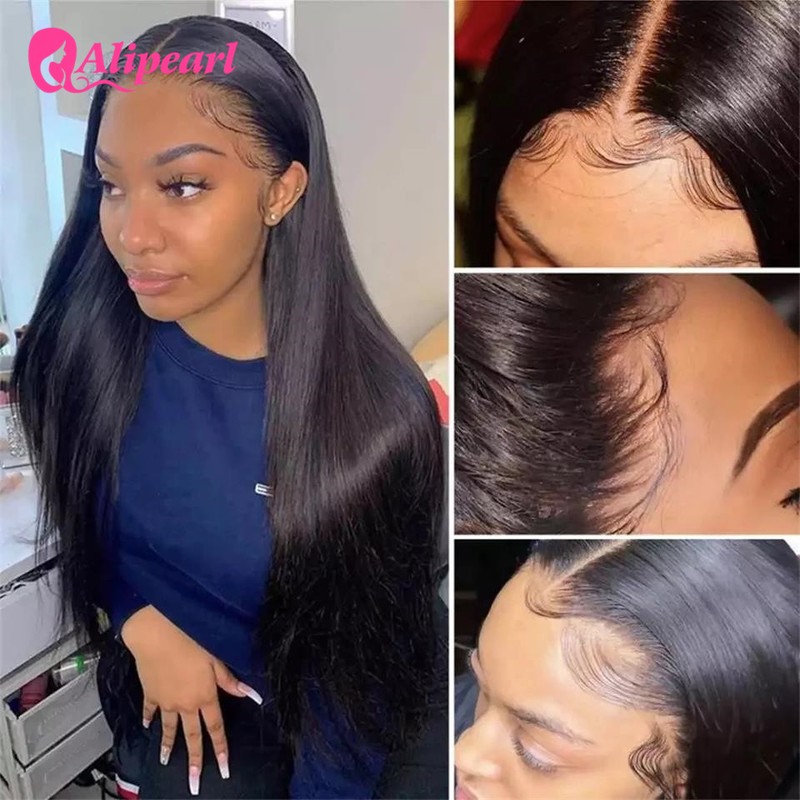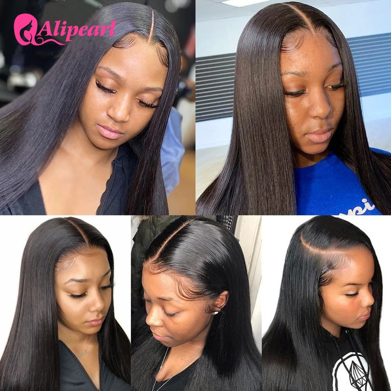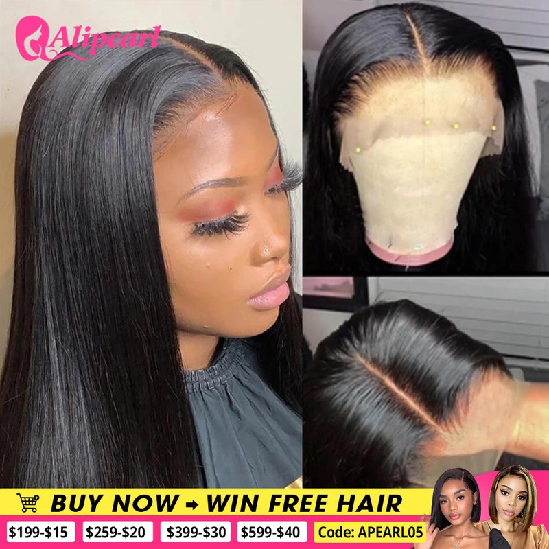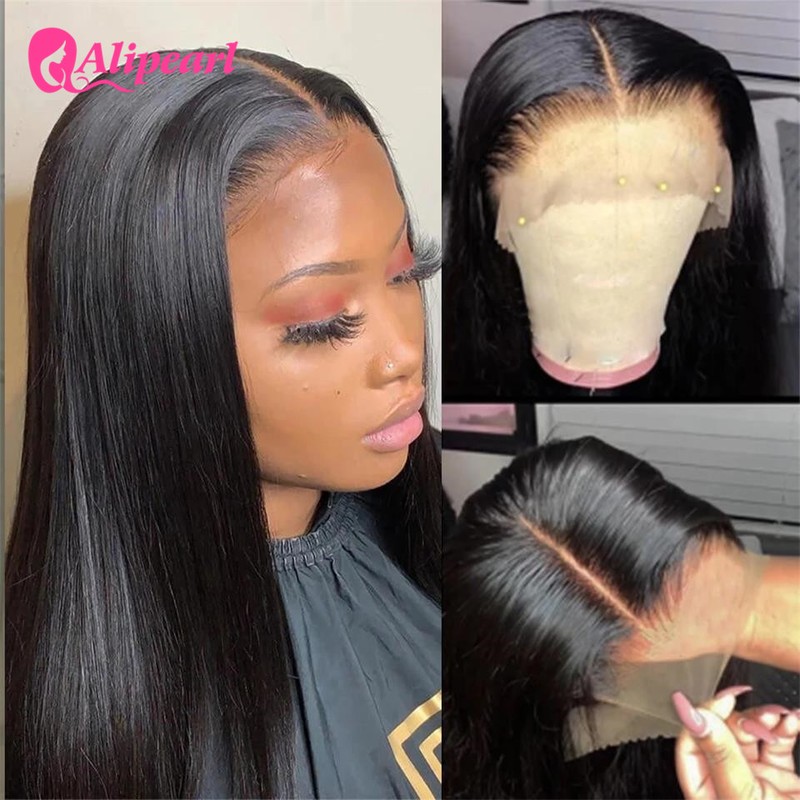 Alipearl Cabelo Em Linha Reta Peruca Do Laço 13X5X1 Parte Profunda Perucas De Cabelo Humano Pré Arrancadas Para A Mulher Ali Pérola Malásia Médio T Parte Perucas