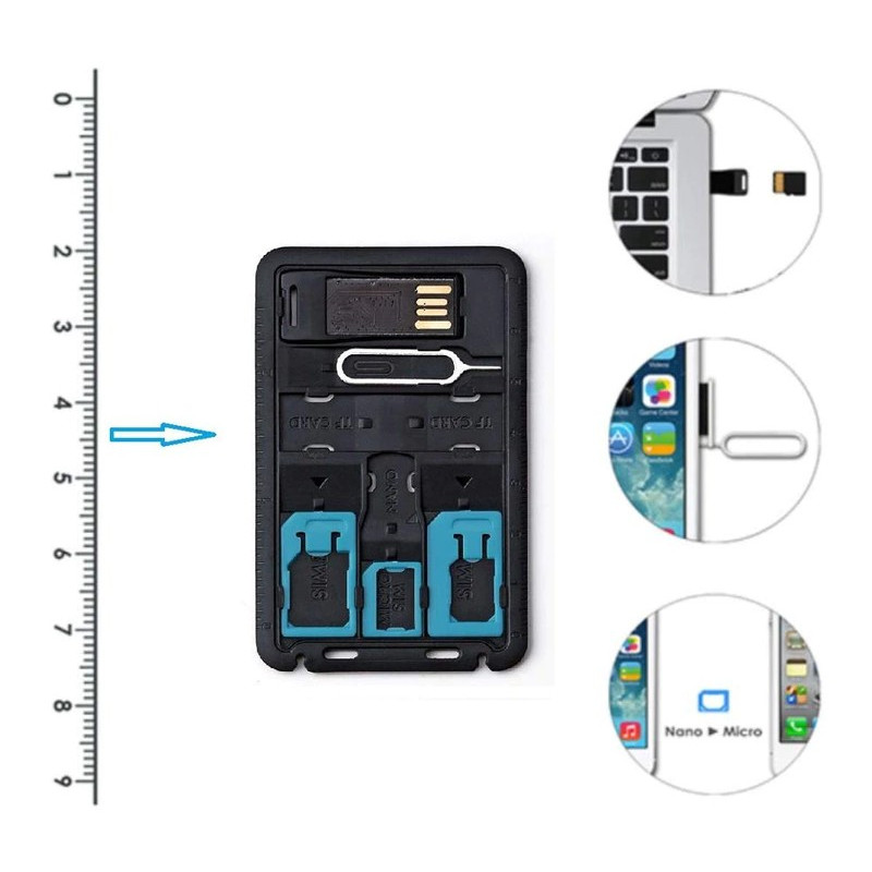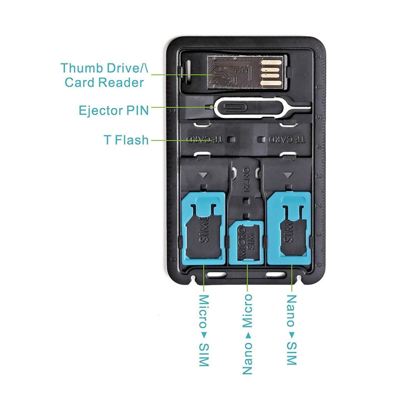 Mantenha 1 titular do cartão sim, você receberá 6 serviços. Tais como o jogo do adaptador do sim, leitor de cartão micro sd, suporte do cartão do sim/tf, pino da ferramenta de ejeção, mini régua e enrolador do cabo. Ideal para viajar e para vários usuários de cartão sim. presente agradável para alguém que viaja.