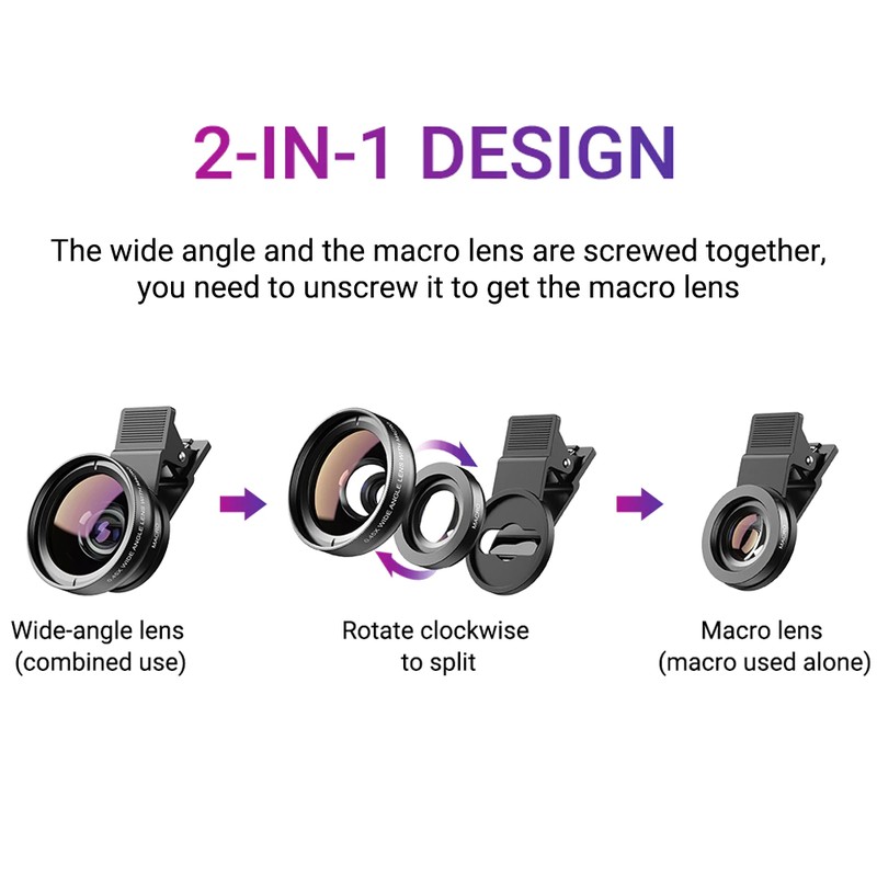 Não há necessidade de alternar constantemente entre lentes. Basta remover o acessório grande angular para revelar a lente macro.