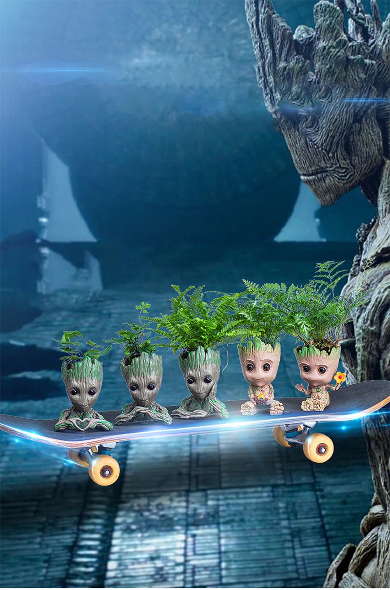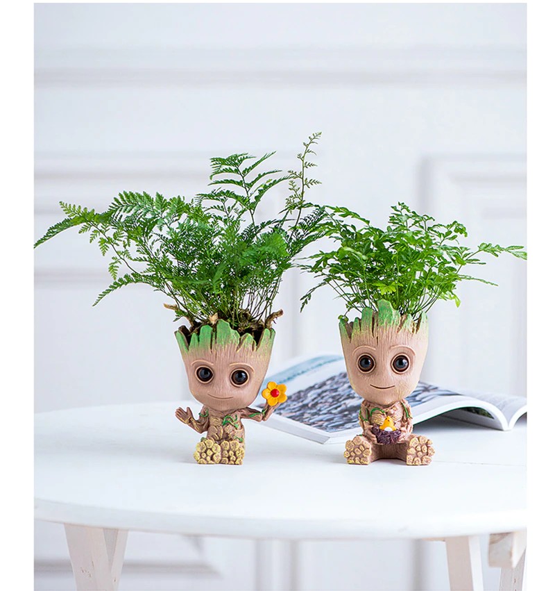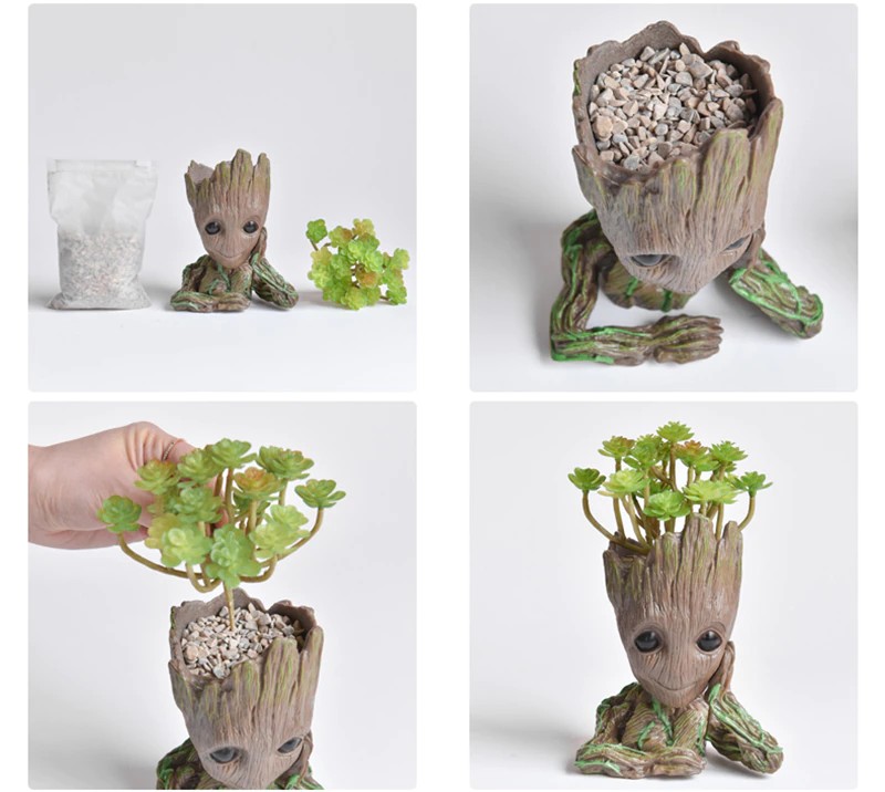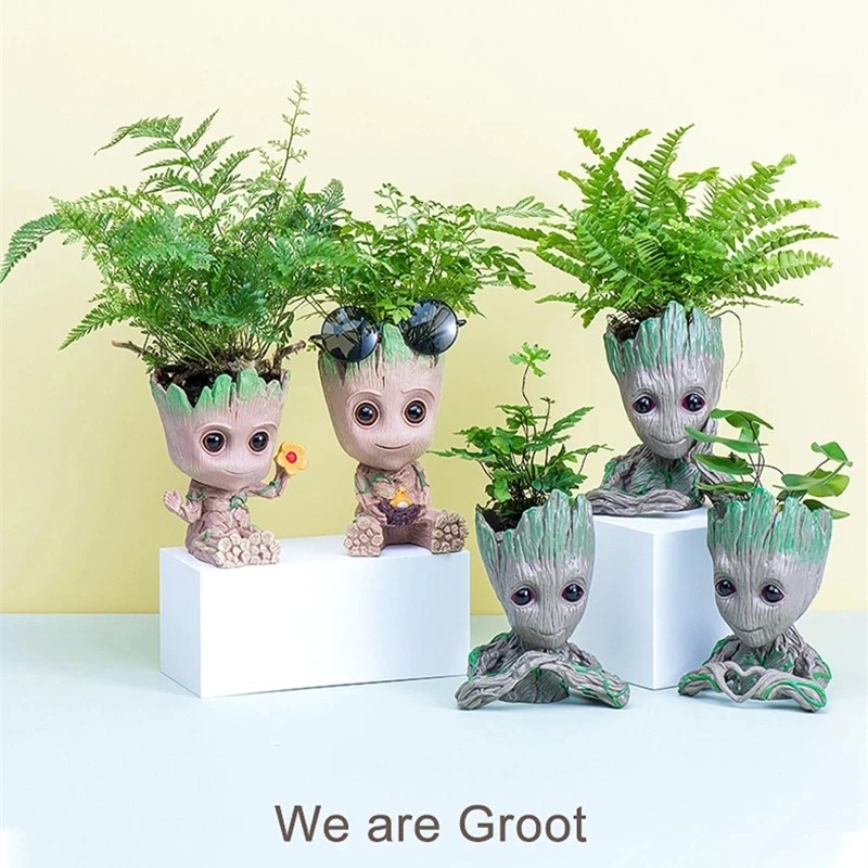 Bebê Groot Bonito Vaso De Flores Suculentas Vasos De Flores Por Atacado Estatuetas De Plástico Decoração Caneta Titular Brinquedos Ornamentos Para Casa Jardim
