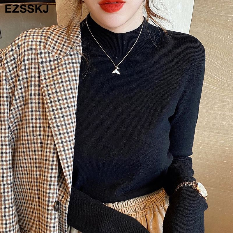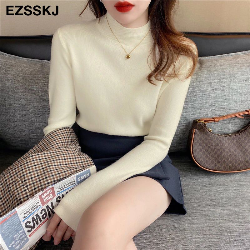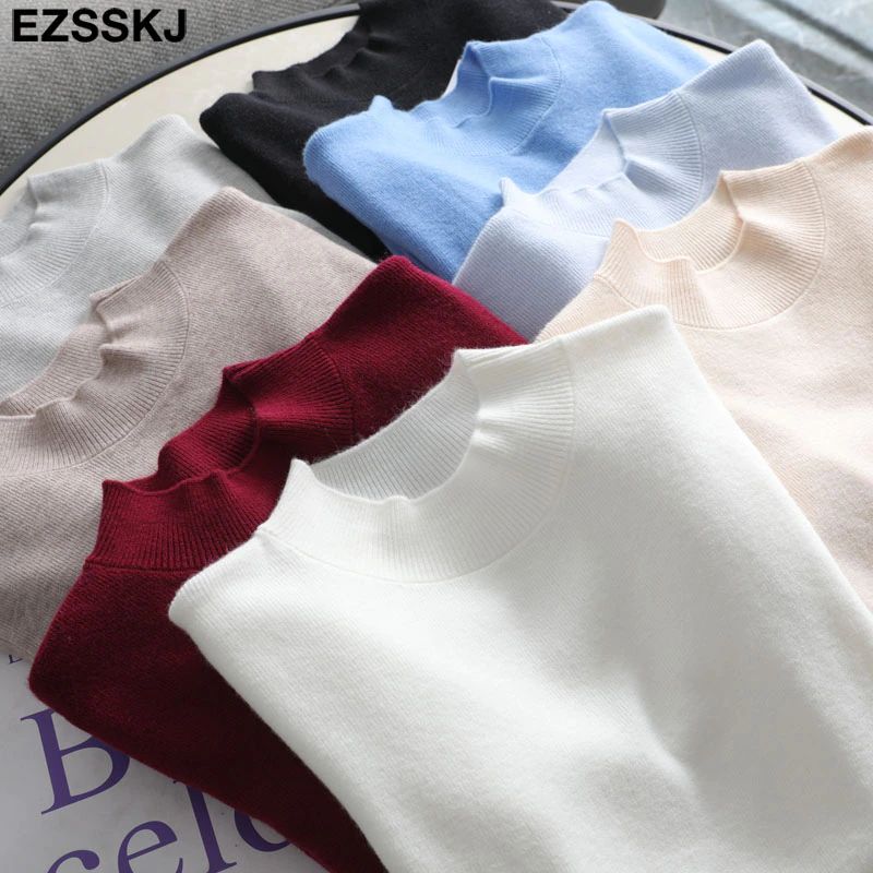 Camisola De Manga Longa Casual Para As Mulheres Do Sexo Feminino Camisola De Gola Alta