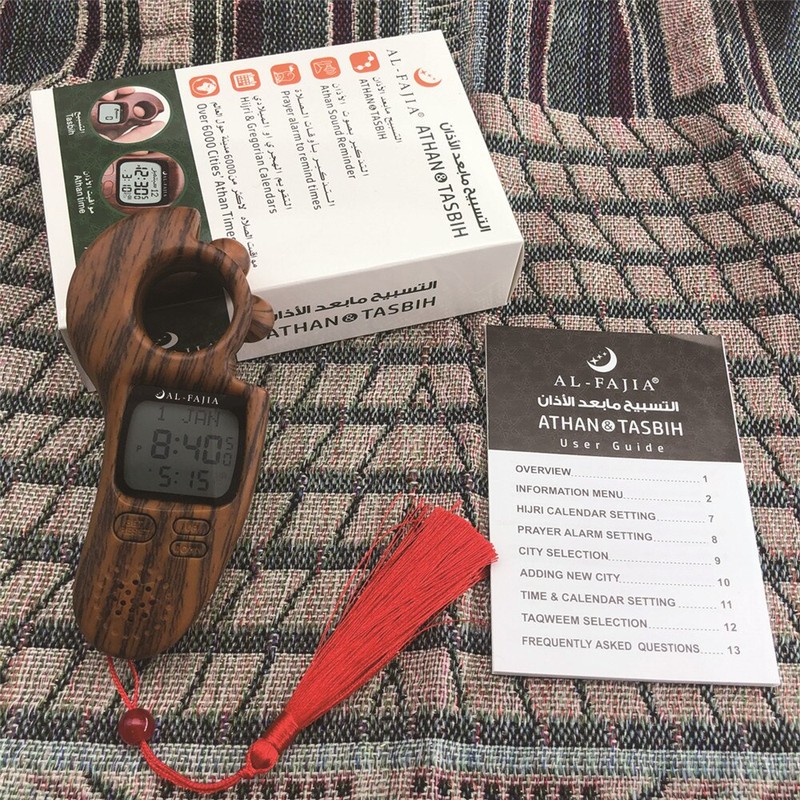 Al-Fajia Contas Contador Digital Tally Tasbih Com Atã Despertador Tempo De Oração Automático Qibla Direção Hijri Calendário Duplo-Idioma