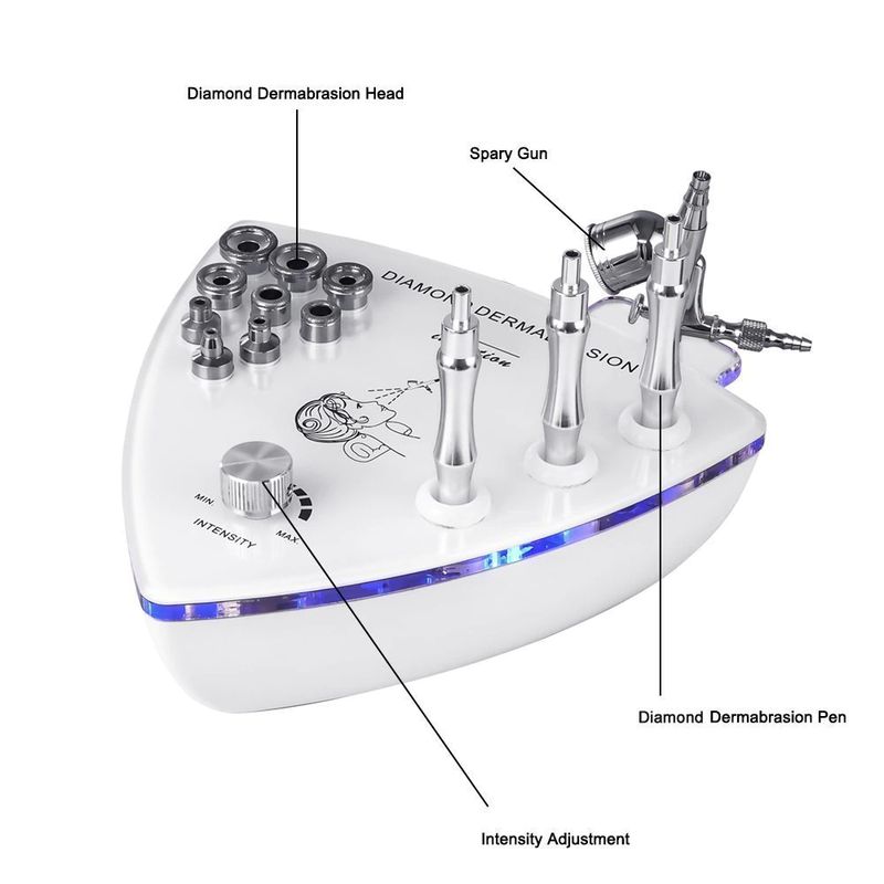 Efeitos: dermabrasion diamante, reabastecimento de pulverizador, diluir rugas/linhas finas, remover cutin/manchas, desvanecimento pigmentação.