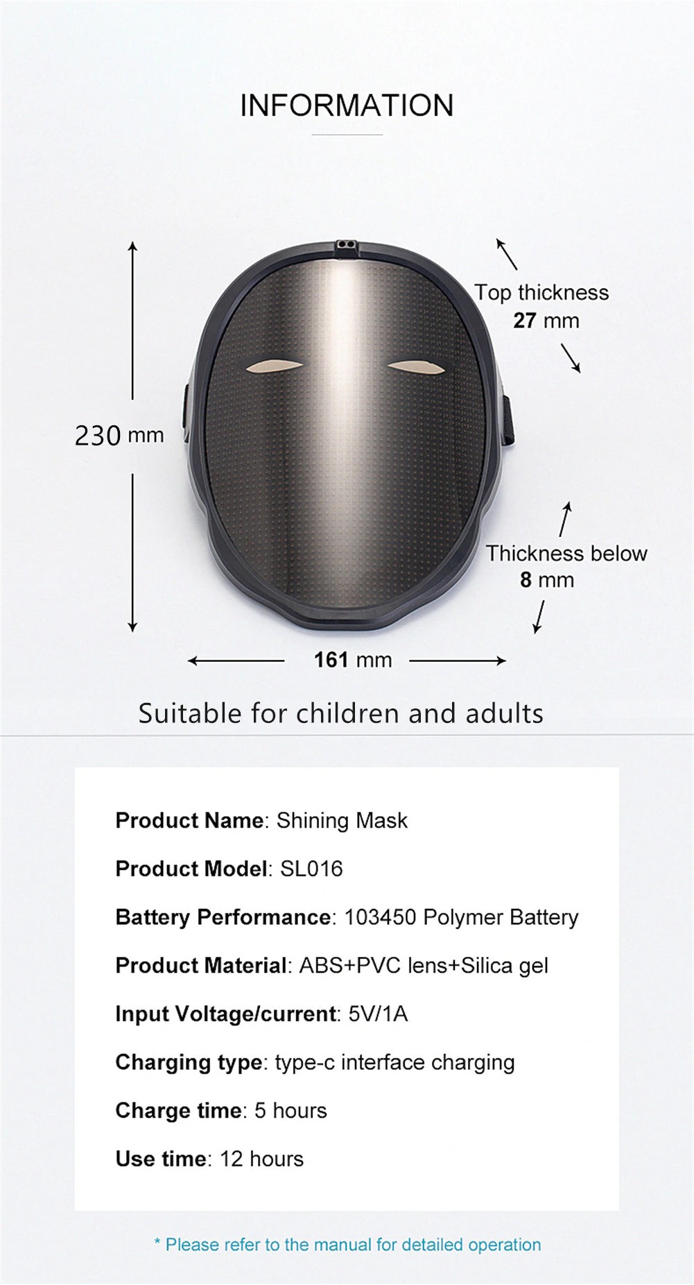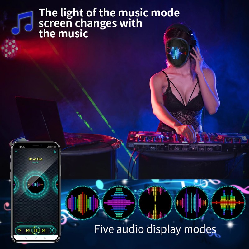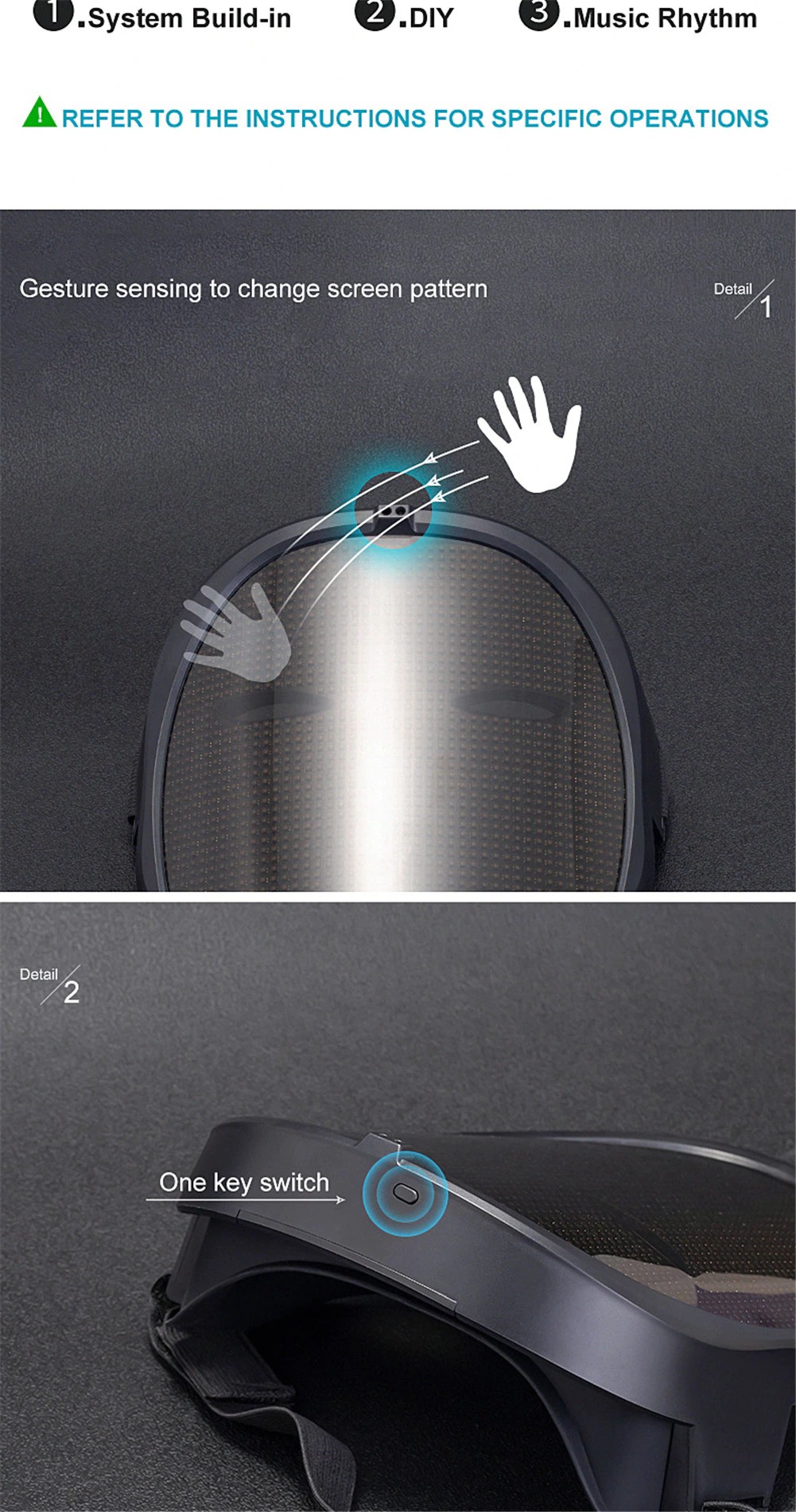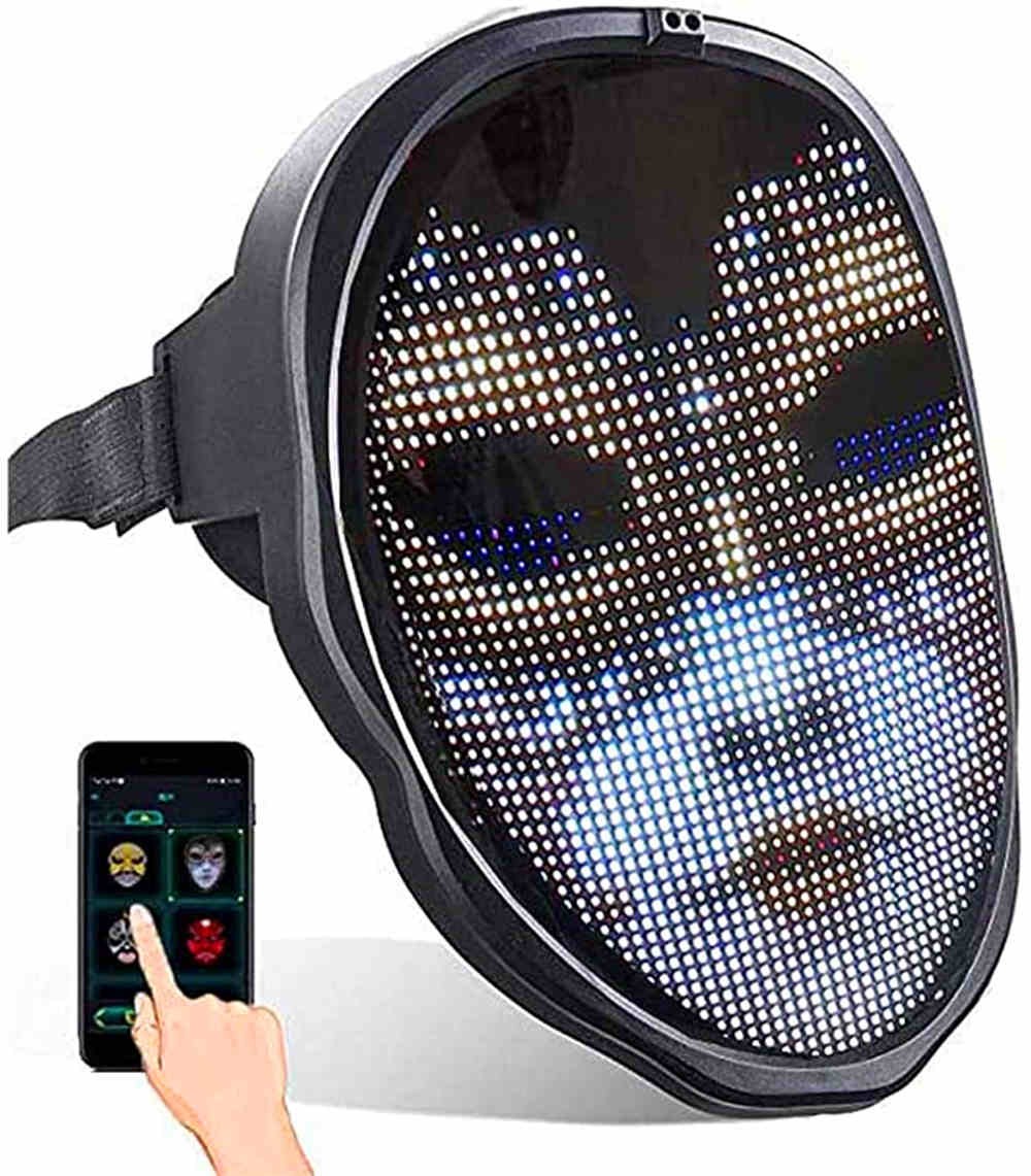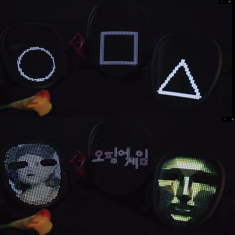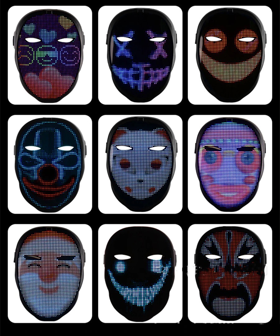 Bluetooth Rgb Light Up Led Máscara Diy Imagem Animação Texto Halloween Natal Carnaval Traje Festa Jogo Crianças Máscaras Deco Presente