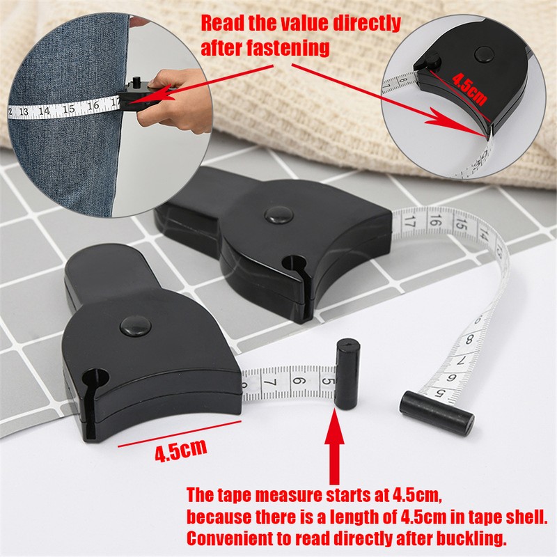 Easy fácil de usar 】: esta fita de medição para medidas do corpo é retrátil. A fita de medição para o corpo tem a retração do botão de pressão e uma característica do fechamento do pino que significa que o pino trava no lugar e você pode retrair a fita para obter as medidas