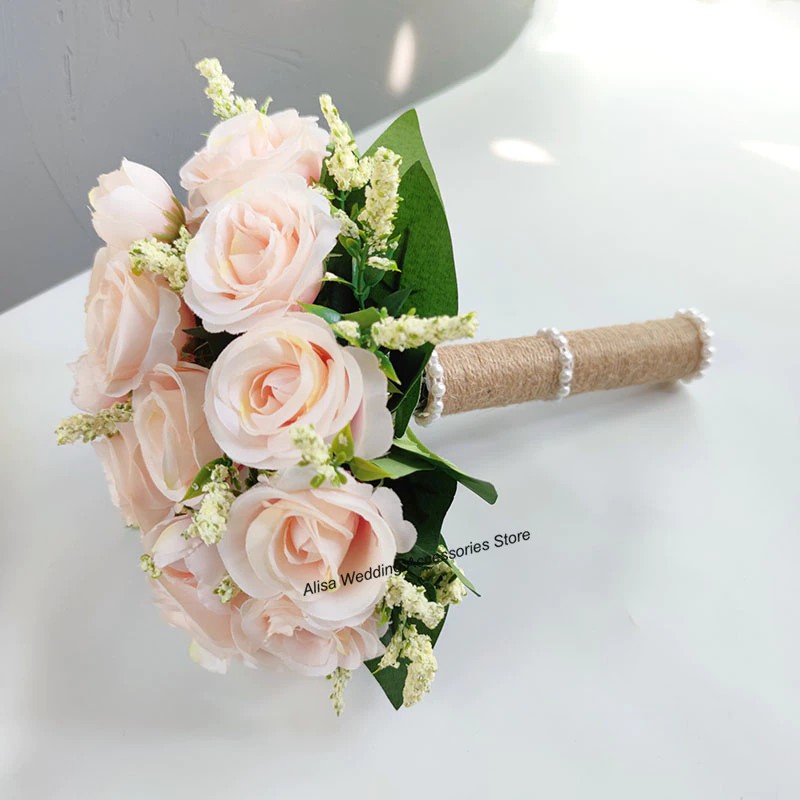 Buquê De Casamento De Noiva Noiva Buquê Flores Seda Branca Rosas Artificiais Noiva Boutonniere Pinos Mariage Buquê Acessórios De Casamento