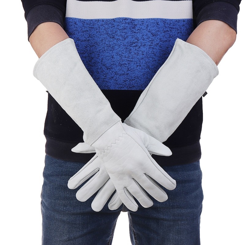 [Luvas de jardim de couro de proteção total]: manopla de comprimento do cotovelo oferecerá proteção até o cotovelo. O punho de couro de vaca estendido protege os antebraços de cortes e arranhões, luvas de poda longa permitindo que você se livre de suas rosas sem dor.