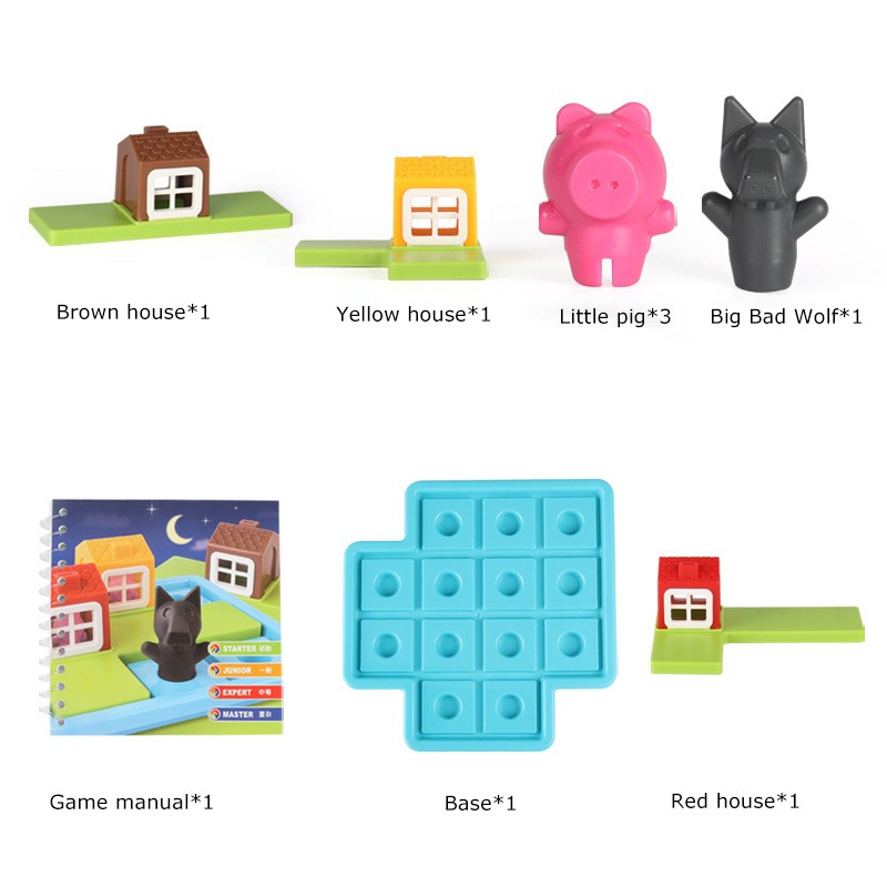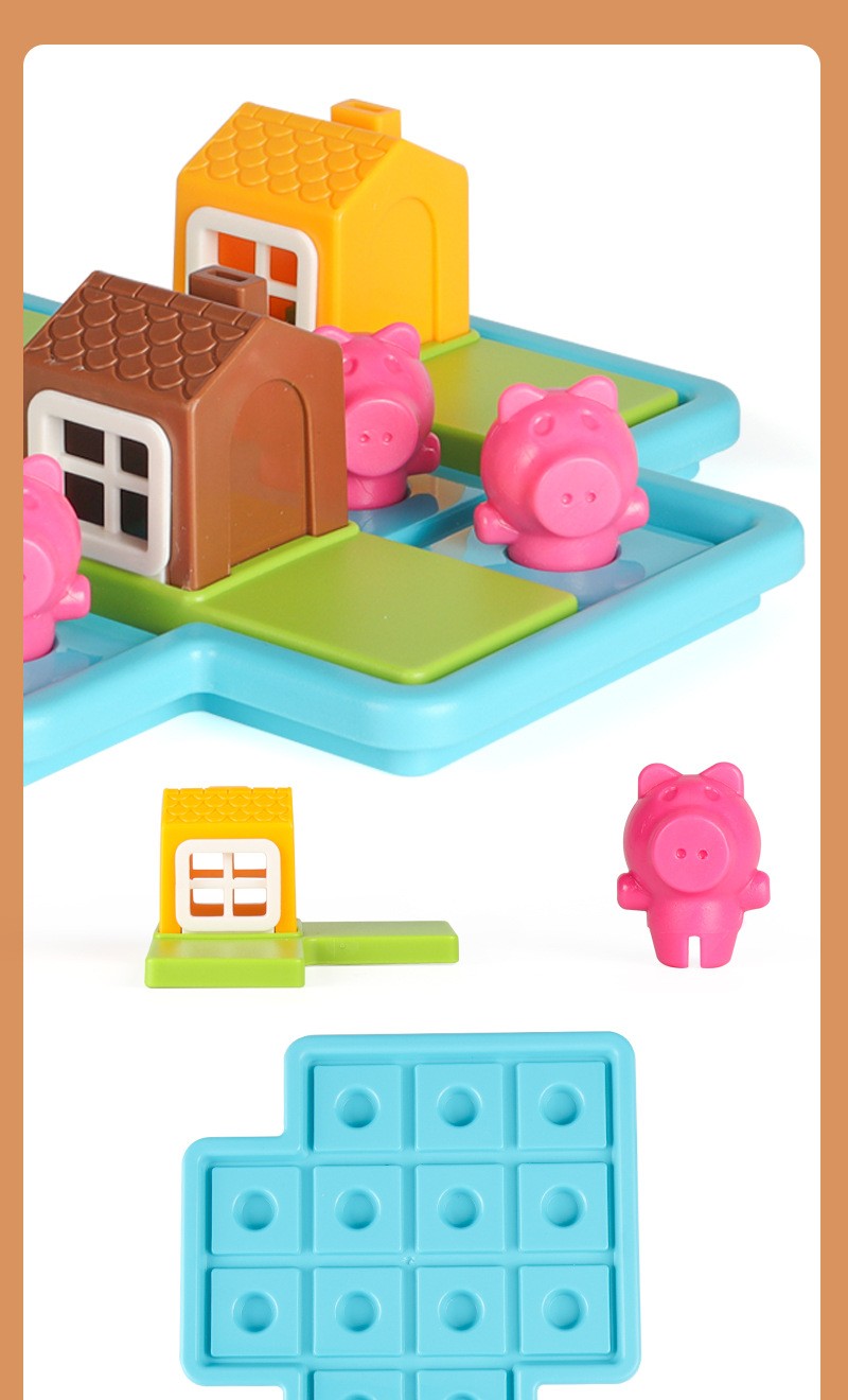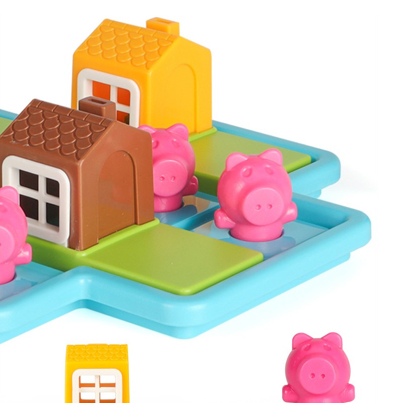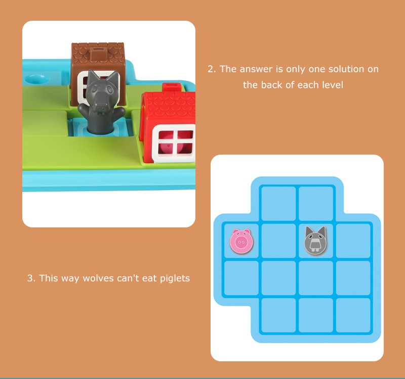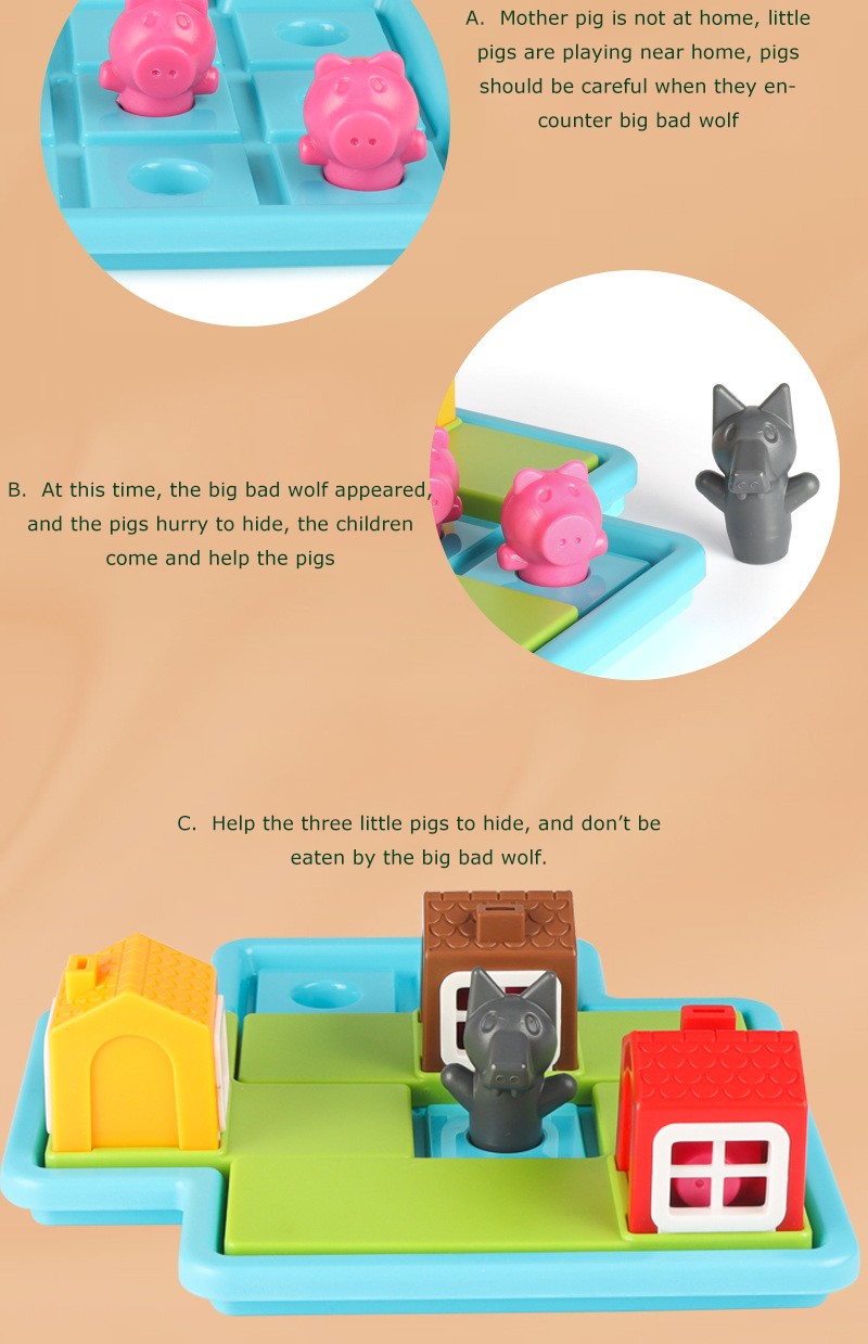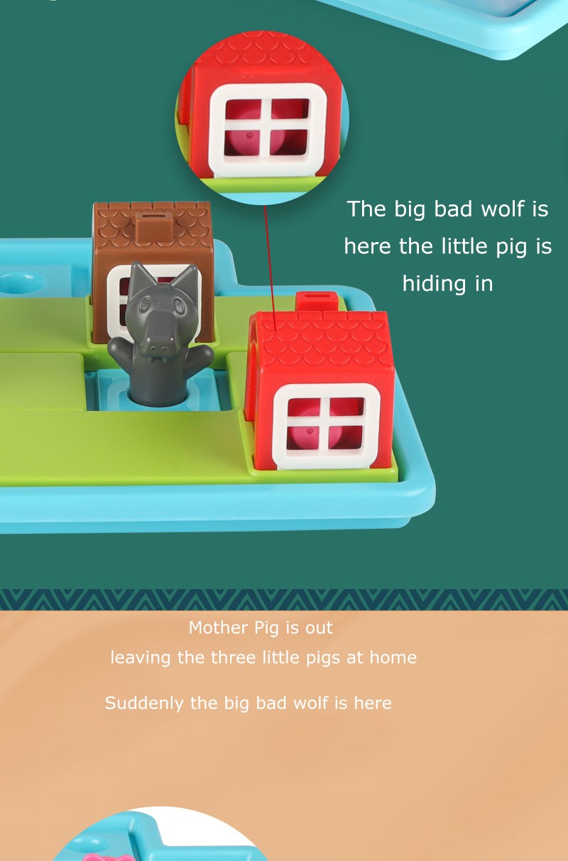 2 put coloque três quebra-cabeças no tabuleiro de jogo, encontrar uma casa adequada para o porco, e manter o lobo fora