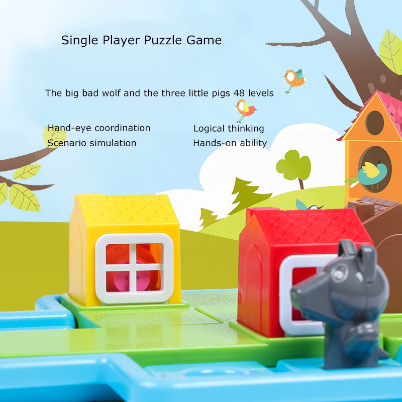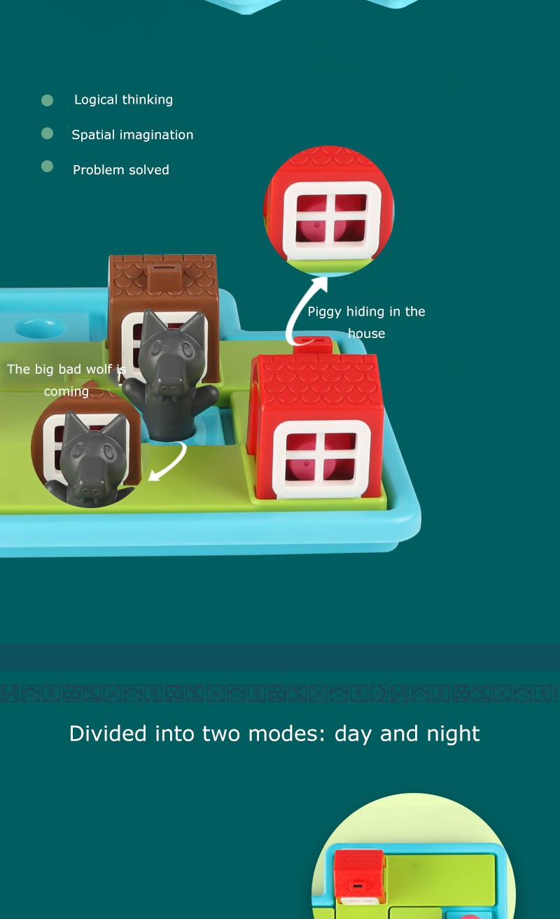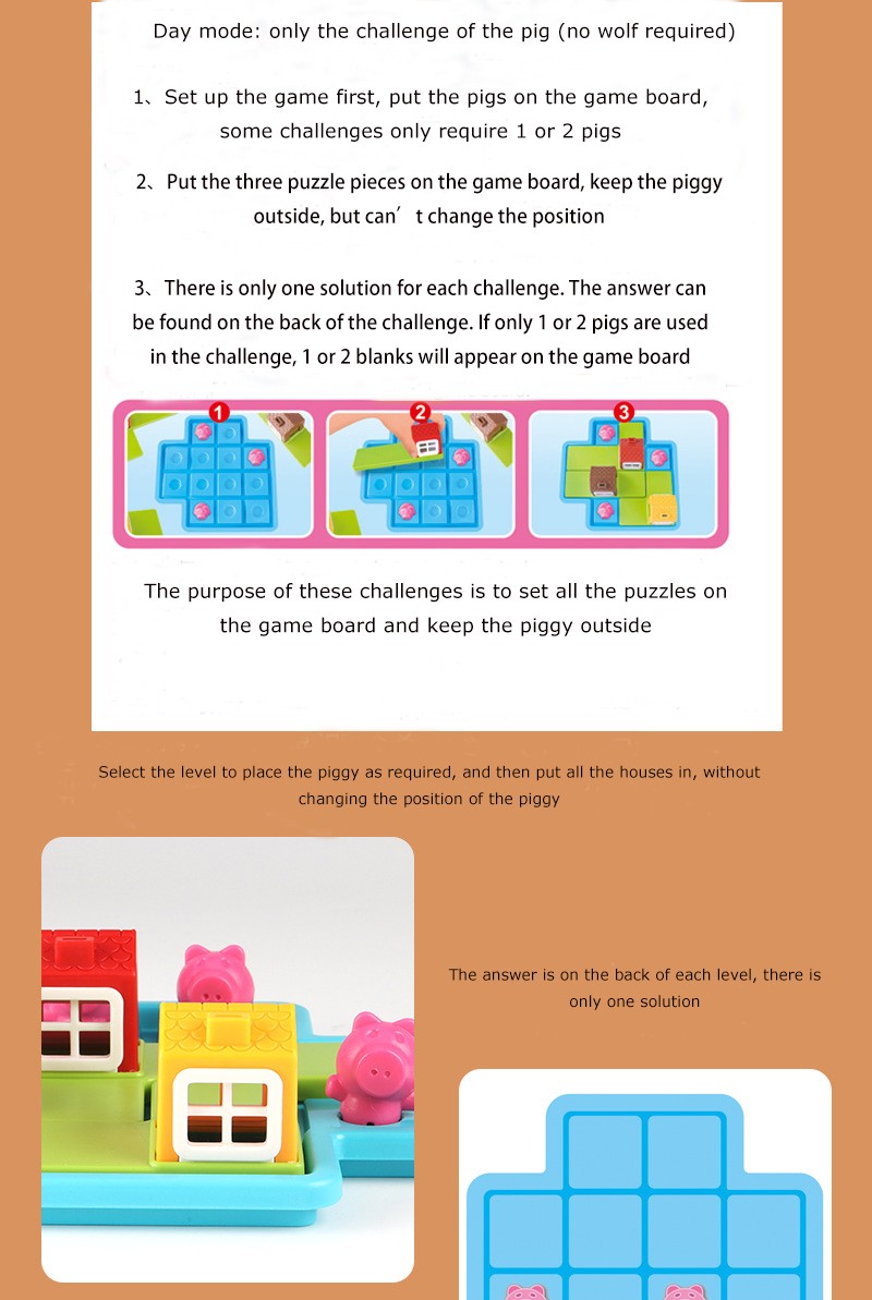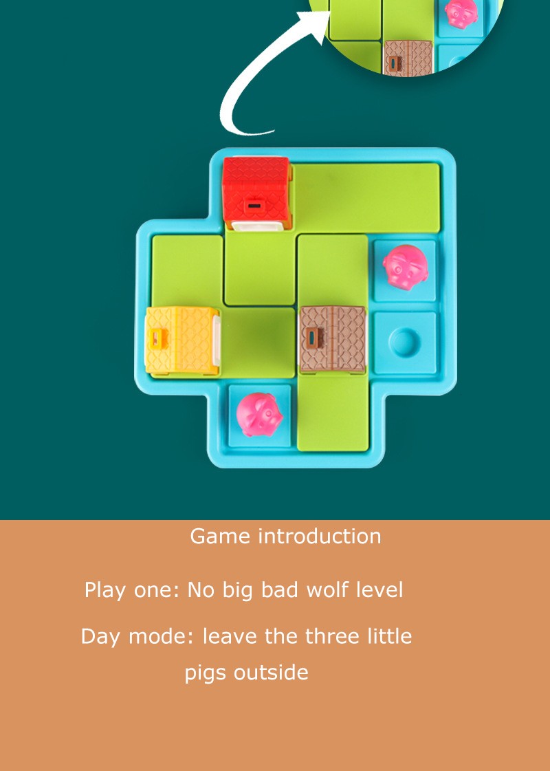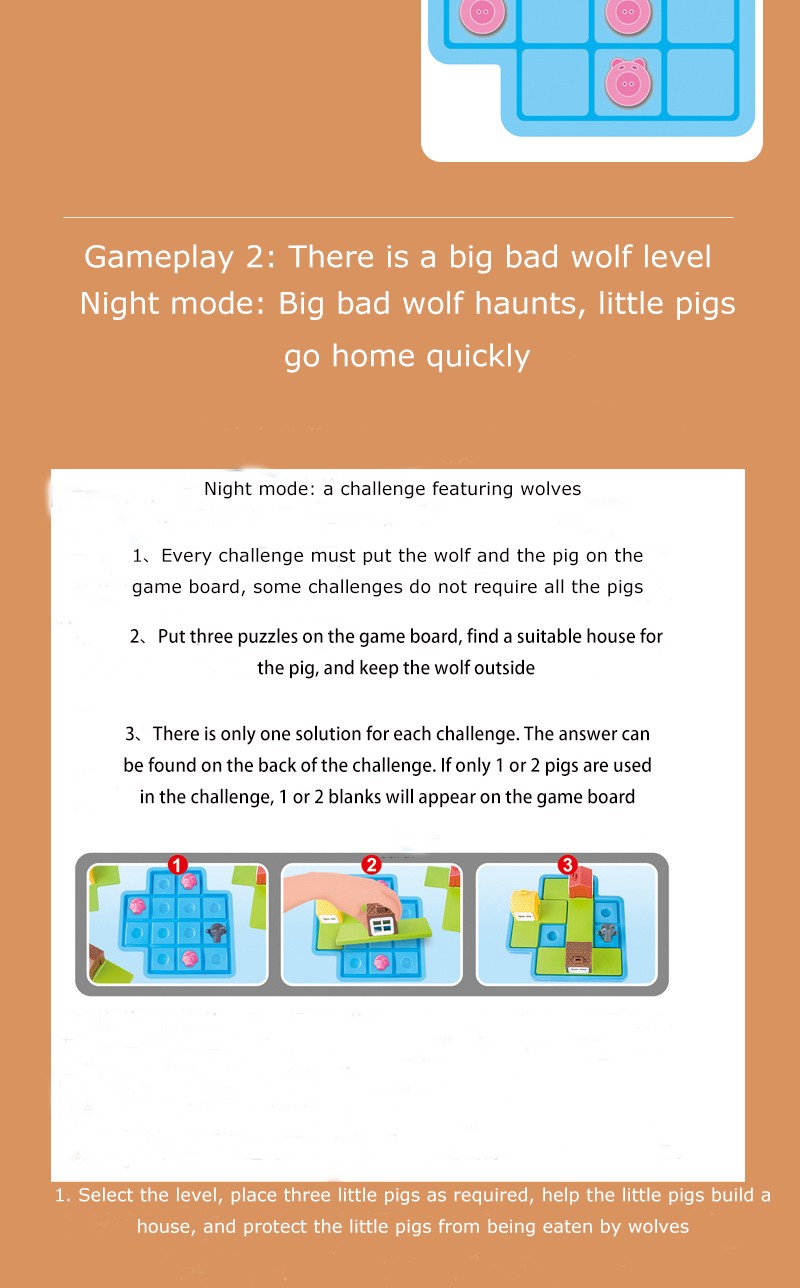 2 put coloque três quebra-cabeças no tabuleiro de jogo, encontrar uma casa adequada para o porco, e manter o lobo fora