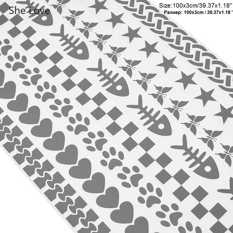 Chzimade 100x3cm calor-transferência reflexiva pet fita adesivo vinil filme de prata ferro em tecido reflexivo roupas diy costura artesanato