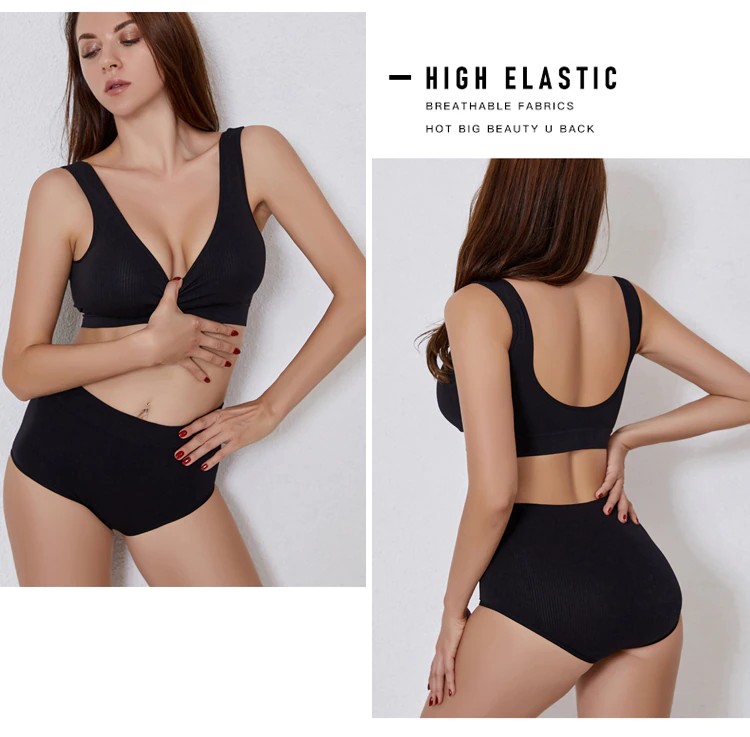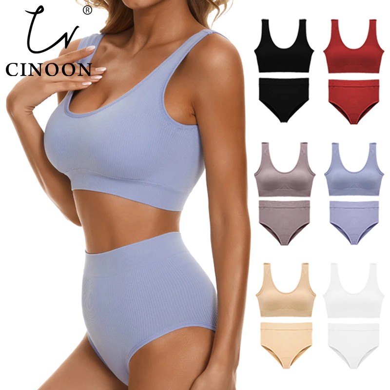Cinoon Sexy Sem Costura Topos Conjunto De Cintura Alta Calcinha Sem Fio Das Mulheres Roupa Interior Terno Macio Acolchoado Sutiãs Conjunto Sem Costas Bralette Lingerie