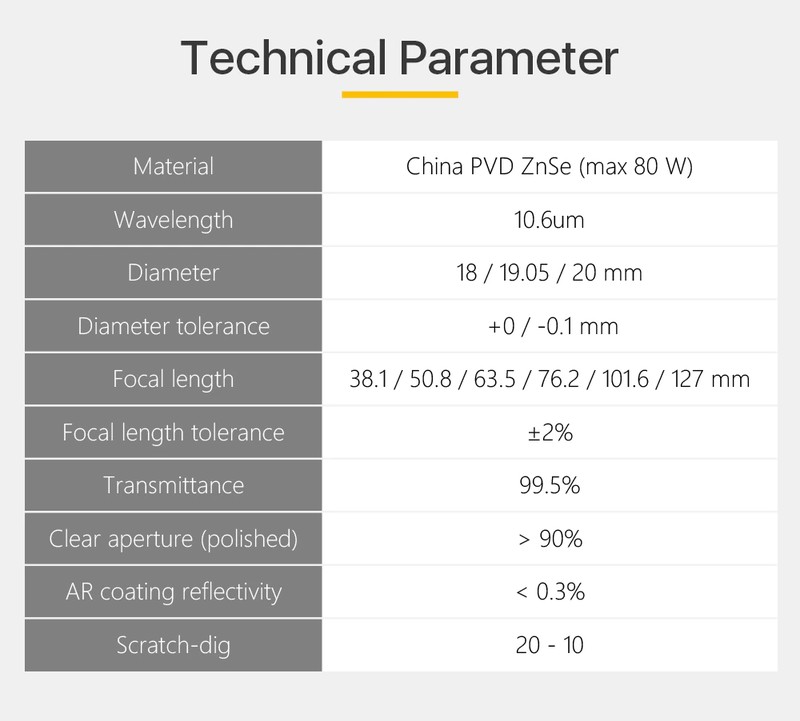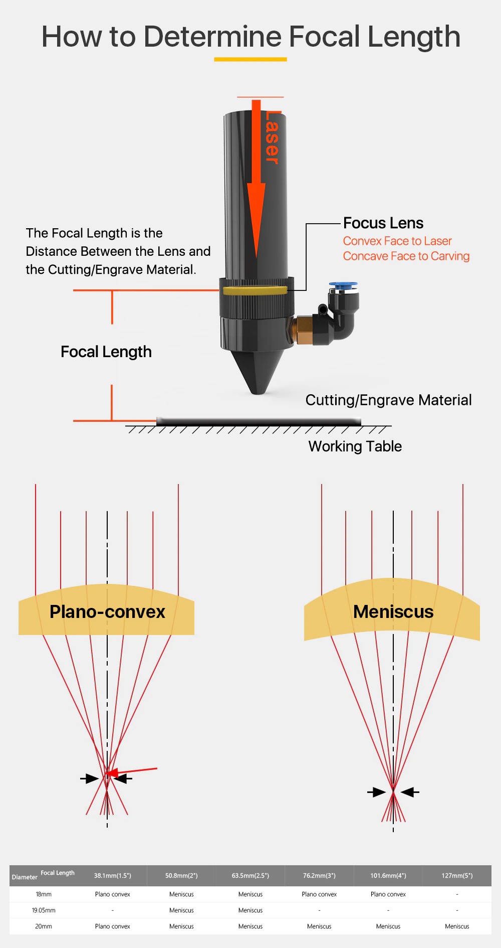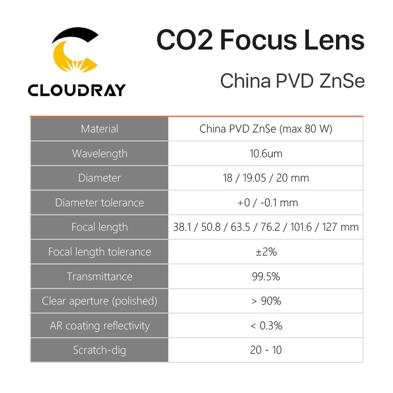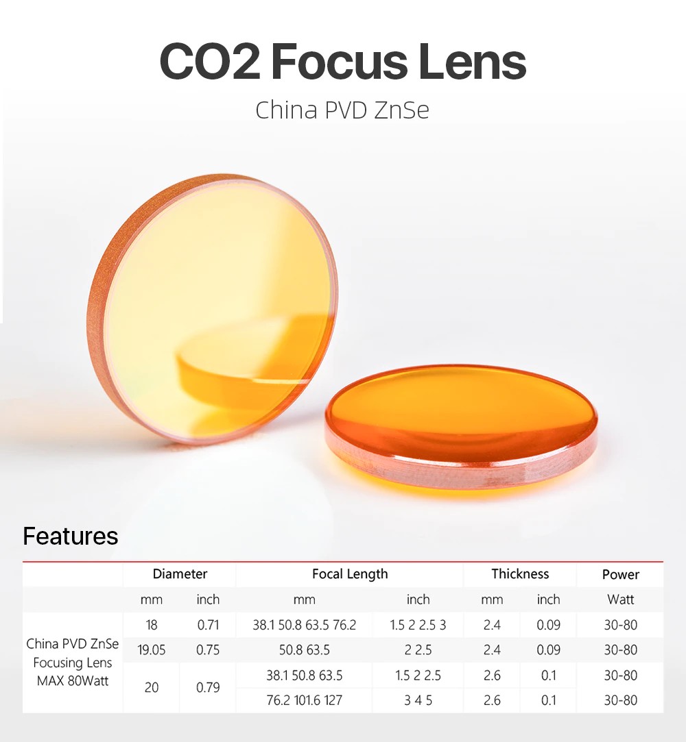 Cloudray China Co2 Znse Lente De Foco Dia.18 19.05 20 Mm Fl38.1 50.8 63.5 101.6 127Mm 1.5 - 4 &Quot;Para A Máquina De Corte De Gravação A Laser